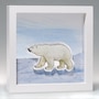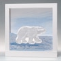 The image originates from a two-dollar stamp issued in 1998 which has been authorized for this piece by Canada Post. The silver polar bear is encapsulated for protection and presented in a Magic Frame for display. The background within the frame includes additional details from the original postage stamp, allowing the shaped image to be beautifully presented in a larger perspective.