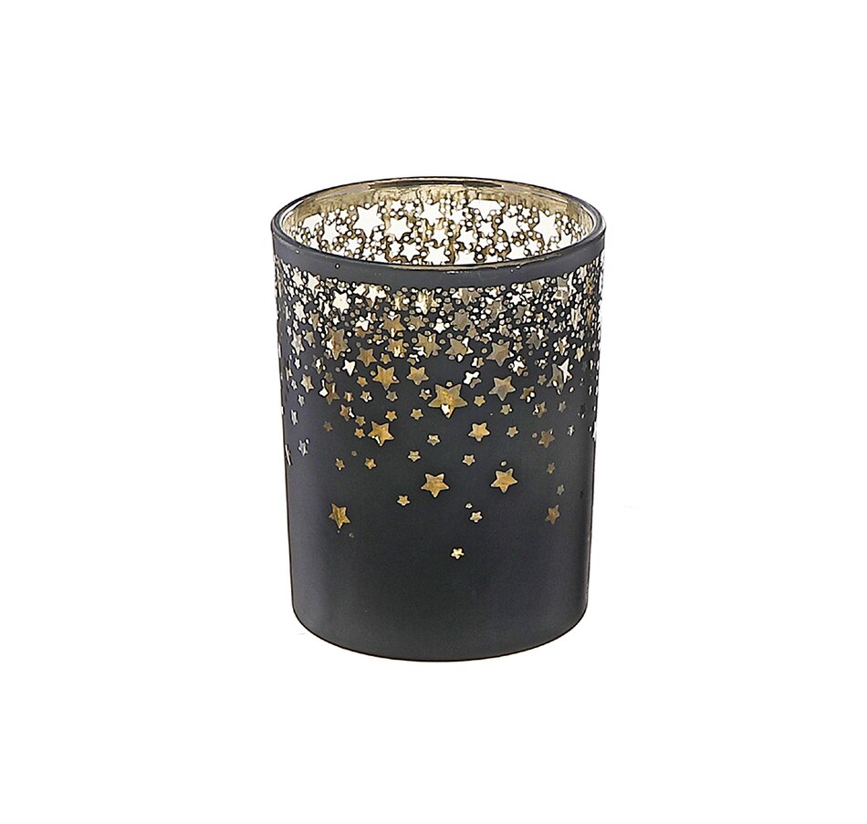 Add a mesmerizing touch to your home décor by placing this glass votive candle holder anywhere you want something a little extra festive. The beautiful black colour with the attractive falling stars design creates the perfect ambiance when used with a candle. Get your home ready for the festive season with this candle holder for jar candles.