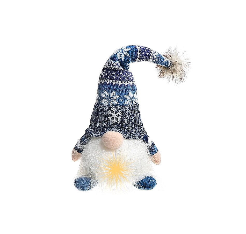 This LED winter gnome sitter is the perfect addition to your holiday decor. This charming decoration features a cute gnome dressed in a cozy winter hat, scarf, and mittens, sitting atop a wooden base. Crafted with care, this decorative gnome also includes LED lights that give off a soft and warm glow, making it a perfect addition to your holiday ambiance. Place it on your shelf, tabletop, or any other place in your home.