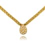This beautiful yellow gold pendant features a pear-shaped cluster of twelve round brilliant cut diamonds. The largest rests at the bottom of two stacked diamonds in the middle. The cluster is attached to the middle of a yellow gold fancy link chain. It secures with a hidden box clasp with a safety latch.