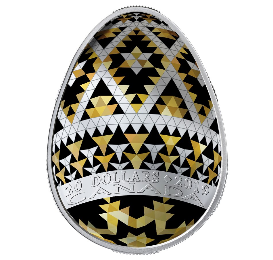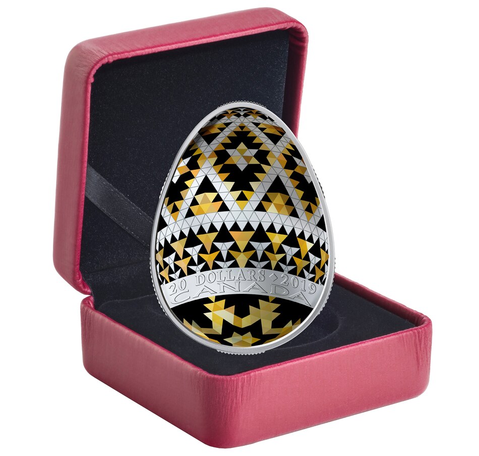 One of Canada’s most anticipated coins from the Royal Canadian Mint each year is the annual Pysanka egg. (All three past issues sold out immediately and appreciated in value in the secondary market.) This newest 2019 $20 fine silver coin Pysanka Egg coin is based on the world-famous landmark in Vegreville, Alberta. In Vegreville, the giant egg monument is nearly 8 metres long and 5.5 metres wide, and stands as a symbol of life and good fortune. It was originally planned in 1973 and completed in 1975 as a tribute to the 100th anniversary of the RCMP, who brought peace and security to the multi-cultural settlement. The fine silver coin beautifully captures the art and symbolism of the original monument with a combination of brilliant selective colour and dazzling silver.  The mintage remains limited to just 5,000 and a quick sell out is anticipated.
