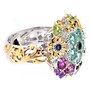 • Multi gemstones are prong- and bezel-set, and include purple garnet, peridot, amethyst, citrine, emerald, brazilian amethyst, dauphin apatite, blue sapphire, tanzanite and white zircon