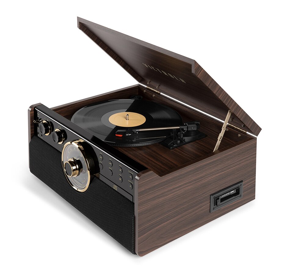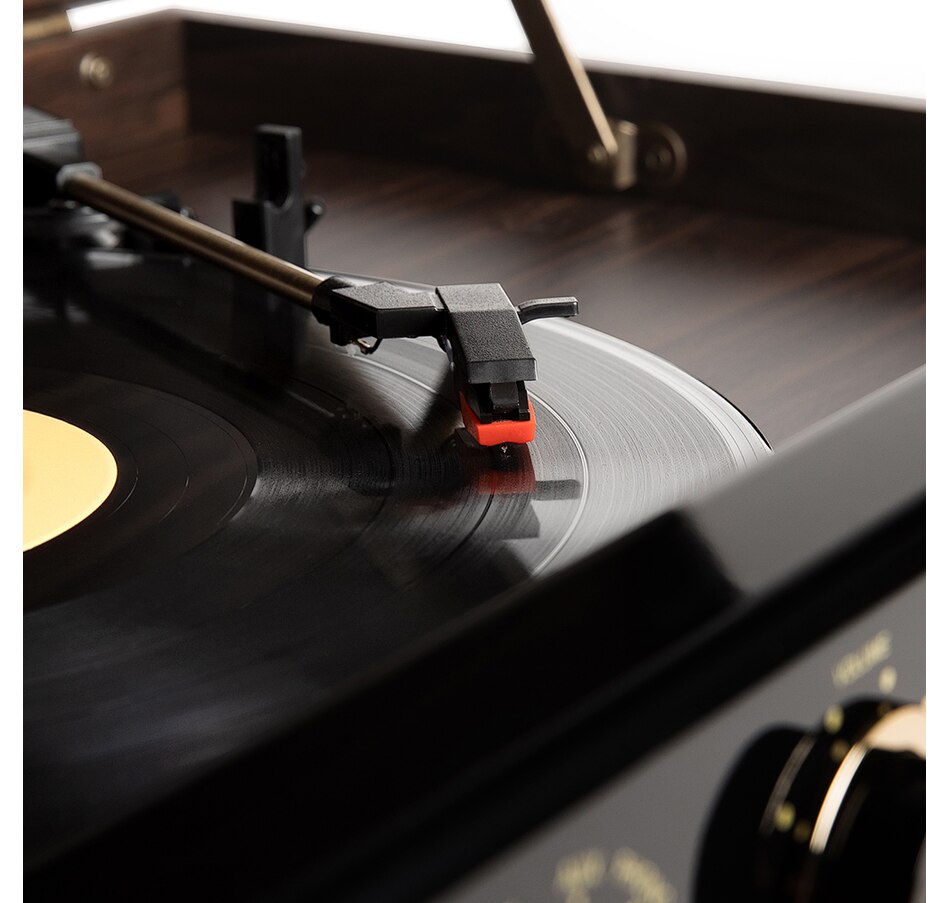 • Three-speed, belt-driven turntable for all your favorite 33 1/3, 45, and 78 RPM records