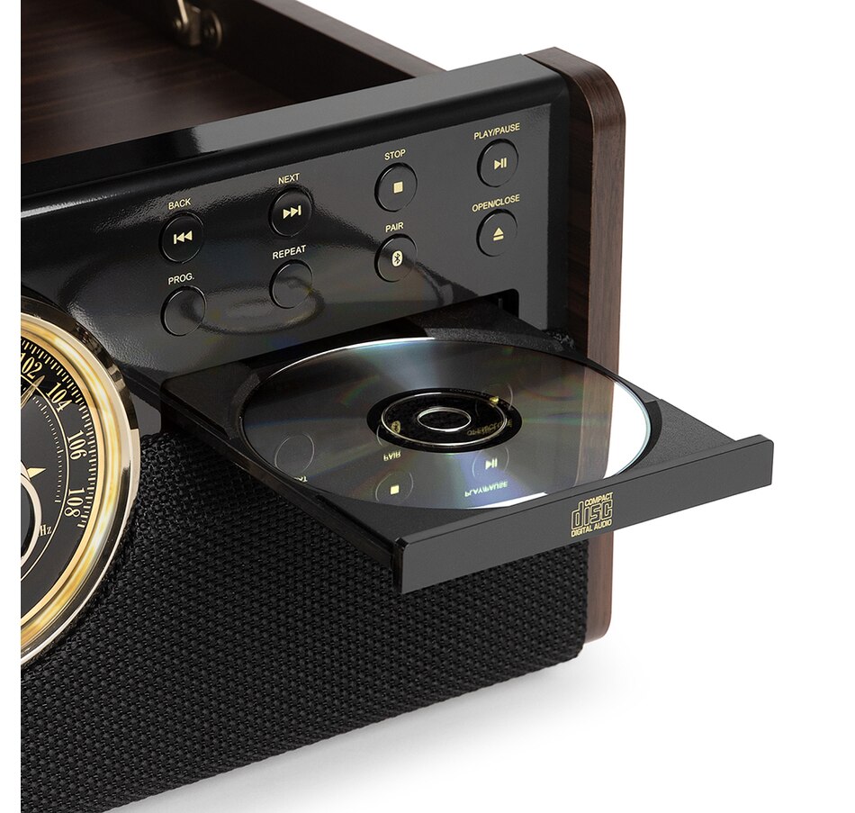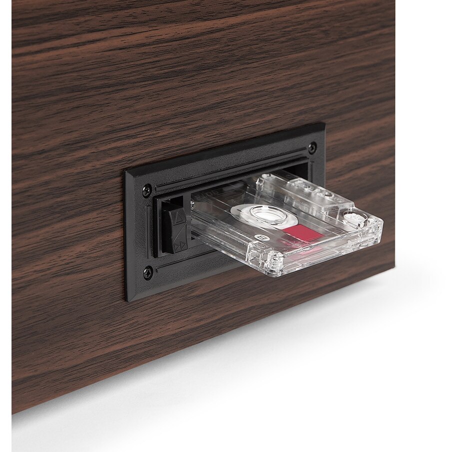 • Includes CD player, cassette player, FM radio, and 3.5mm aux-in to listen to any format