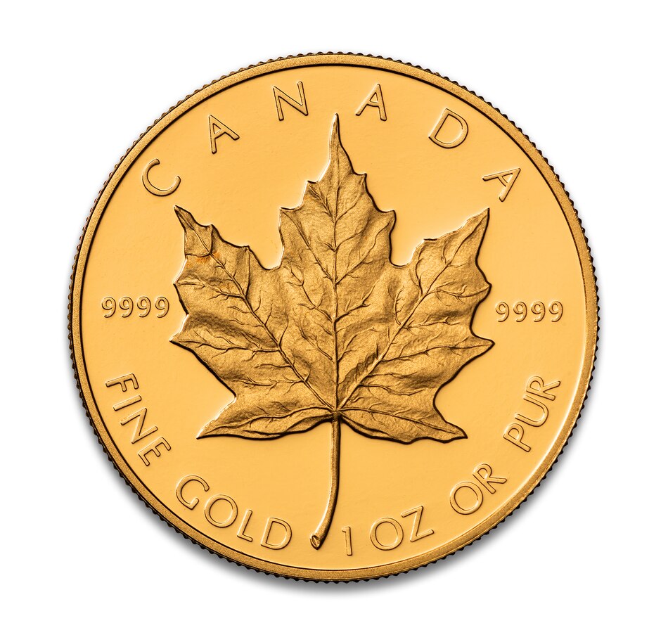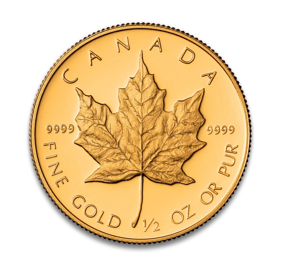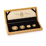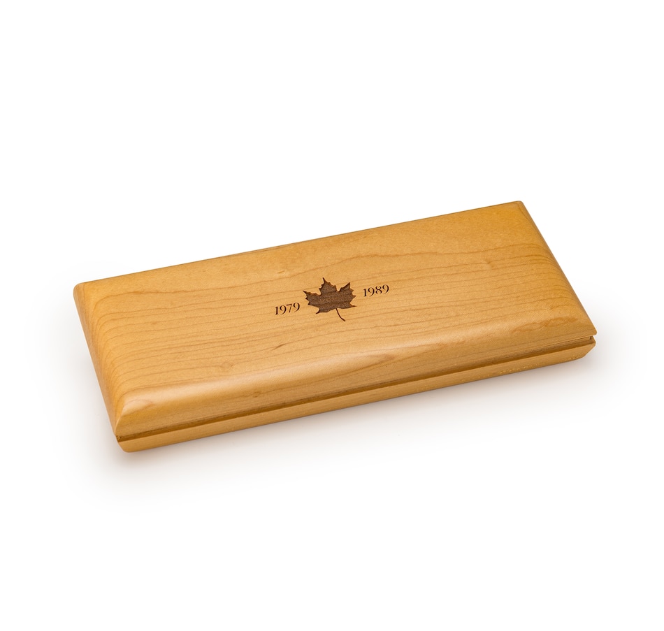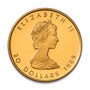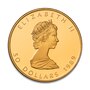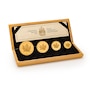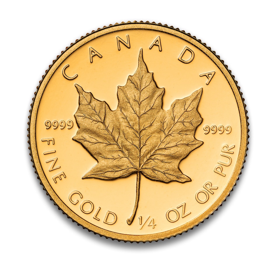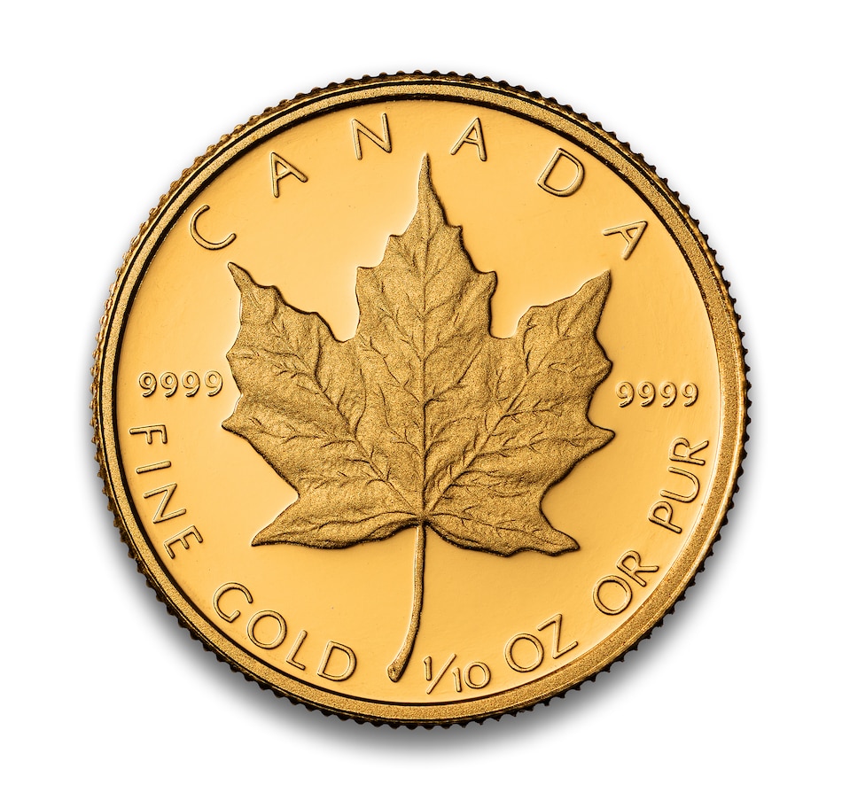 This four-piece limited collector edition gold maple leaf proof set was issued by the Royal Canadian Mint in 1989 to mark the 10th anniversary of Canada's first gold maple leaf coin introduced in 1979. The set features all four weights and denominations that were issued at that time, including 1-oz, 1/2-oz, 1/4-oz and 1/10-oz gold coins. Unlike regular bullion coins, the coins in this set are double-struck with a near-flawless frosted proof finish. On the reverse side of all four coins, Canada's maple leaf shines as a symbol of pride, tolerance and unity, while the classic effigy of Queen Elizabeth II graces the obverse.