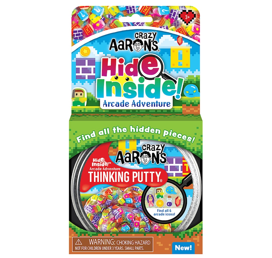 Level up your senses! Power up blocks won’t stop you from saving the six character and treasure pieces in this Arcade Adventure. If you look close enough you'll always find what you’re looking for with the Hide Inside collection. Be on the hunt for six unique pieces, whether you are looking for spontaneous expressions amongst the smiling faces or bothersome bugs throughout the greenery, you’re sure to be captivated with the challenge of discovering them all! Thinking Putty helps build hand and finger strength through a fabulous tactile play experience with unique, unexpected properties and provides relaxing, yet stimulating interaction for anyone with sensory integration issues. Crazy Aaron's putty is non-toxic, won't dry out, and won't leave a sticky or slippery residue on your fingers, so it's great for stretching, molding, bouncing, tearing, popping and playing by kids and adults alike.