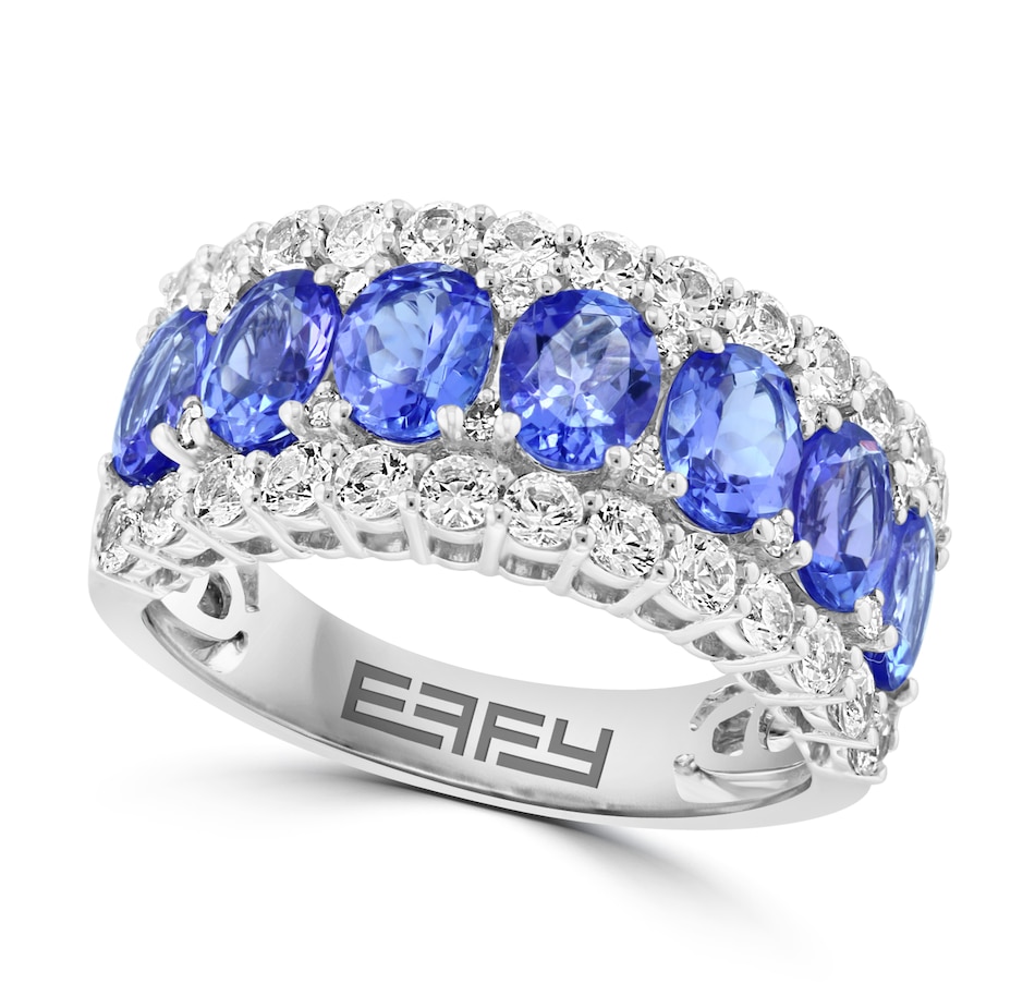 Add some bedazzling sparkle and shimmer to finish every look with this diamond, tanzanite and sapphire gold ring from EFFY.