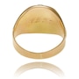 This outstanding vintage gentleman's ring is fashioned with a signet presentation. The textured cushion-shaped top is engraved with a high-polished image of an eagle, wings spread to wrap around a 0.12-carat, white gold, bezel-set, Old-European-cut diamond located near the top. The eagle's talons seem to be grasping the initials "A. S." The band tapers in a ribbed pattern as it rounds the finger and the inside of the ring is engraved "1991." Antique old mine and old European-cut diamonds are commonly found in jewellery from the Georgian, Victorian, Edwardian, and Art Deco Eras, spanning from the 1700s through the late 1800s. Diamonds from this time were cut by hand because the bruting machines we use today weren’t invented until the 1900s. It is interesting to note that the diamond in this ring appears to be much older than the ring, itself, which suggests that it was custom mounted at a later date.