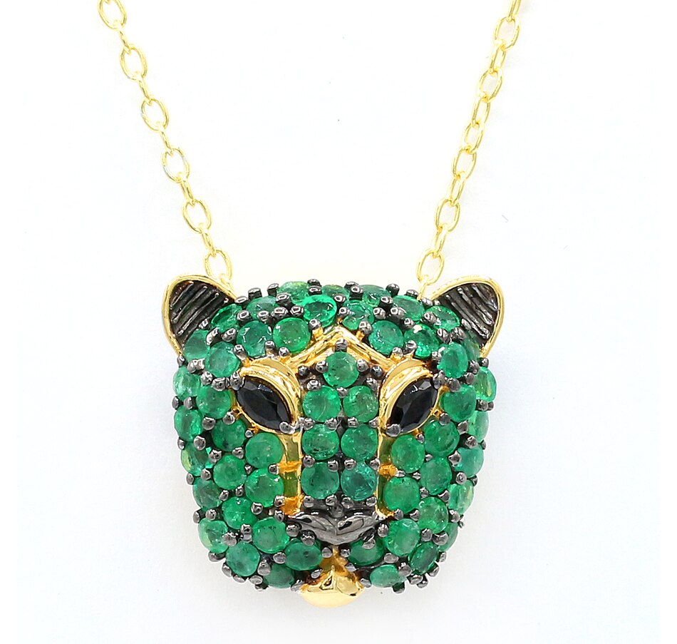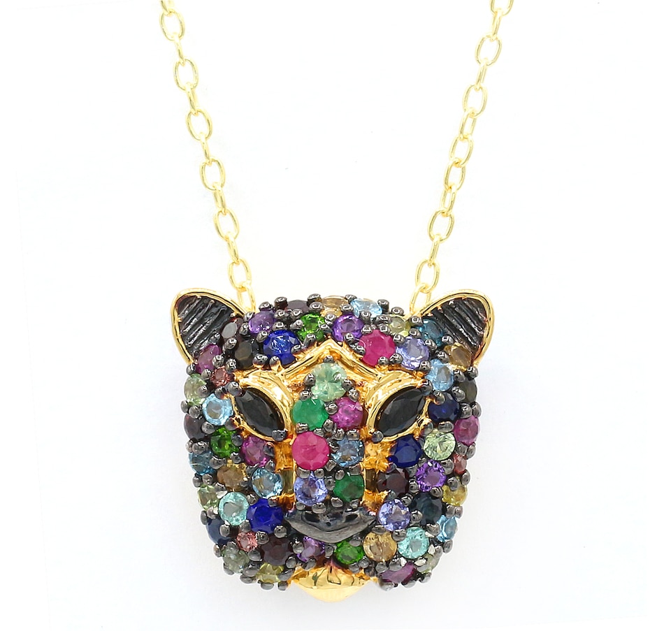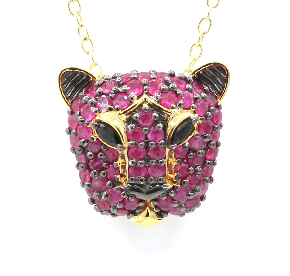 Palladium Silver Panther Gemstone and Black Spinel Panther Pendant with Chain