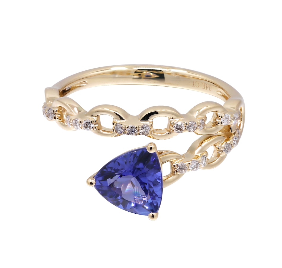 • (1) 7mm trillion shape, prong set and faceted tanzanite (1.219 av. ctw)
