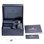 The watch is attached to a stainless steel and black ceramic bracelet with deployment clasp. It runs on a quartz movement, contains a sapphire crystal and screw-down crown, and is water-resistant to 300 metres. This piece comes with its original box, instruction manual, diamond certification and one extra link.