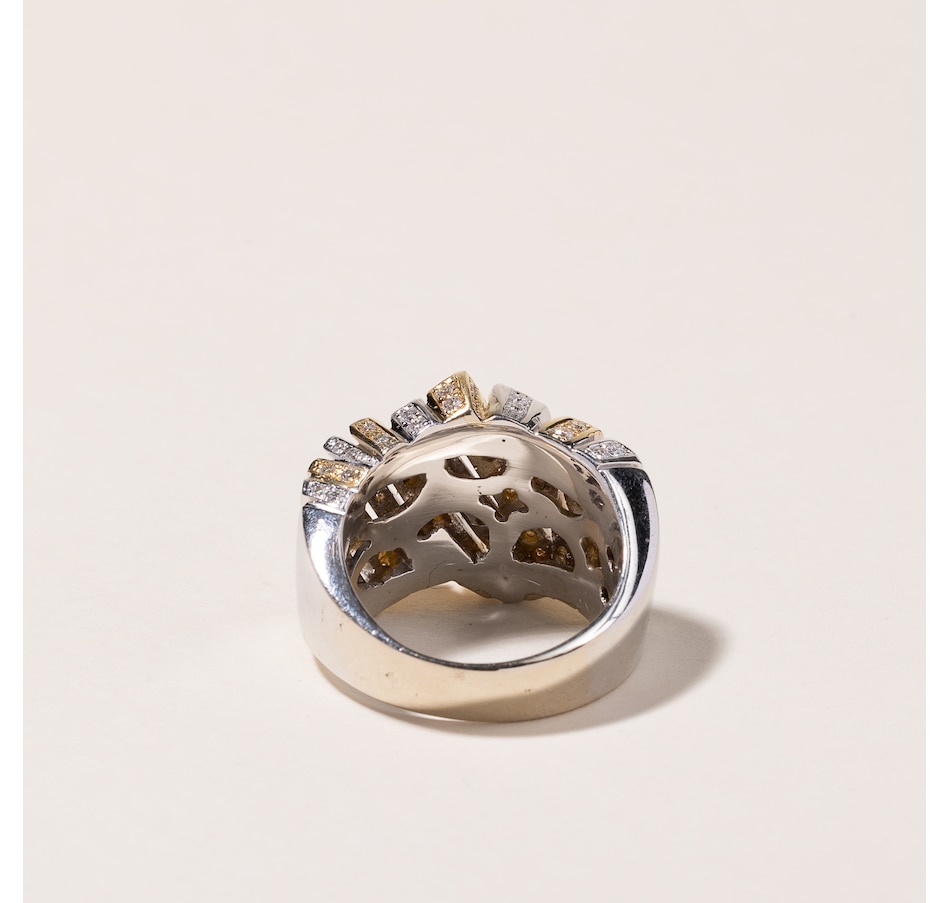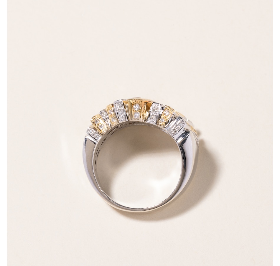 Custom Made 18K White and Yellow Fancy Bar Design Diamond Ring