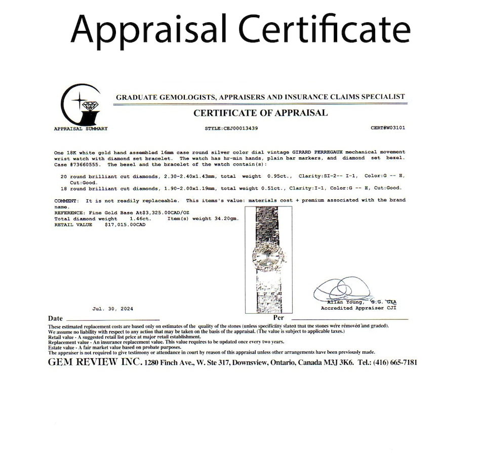 18K White Gold Vintage Girard Perregaux Wrist Watch