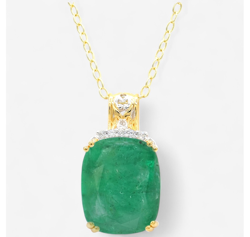 • (1) 15mm x 11mm cushion cut, prong set Zambian emerald (10.00 av. ctw)