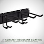 • The scratch-resistant coating on the hook hangers protects equipment and prevents sliding