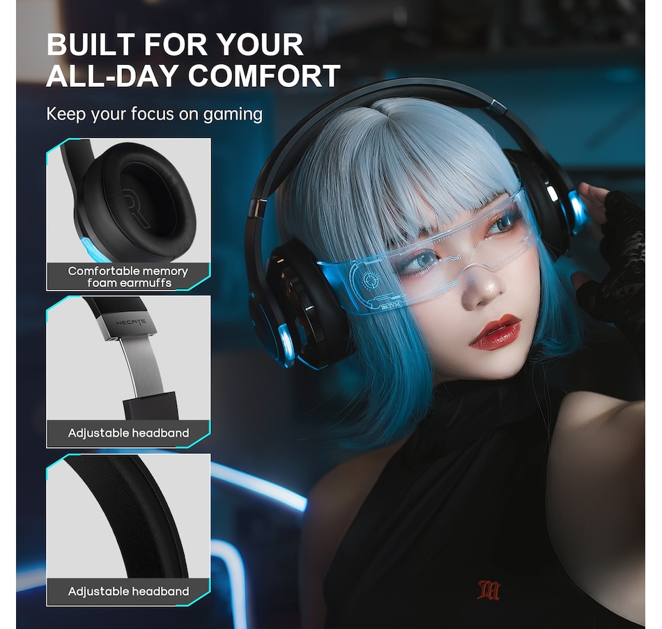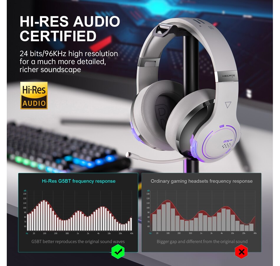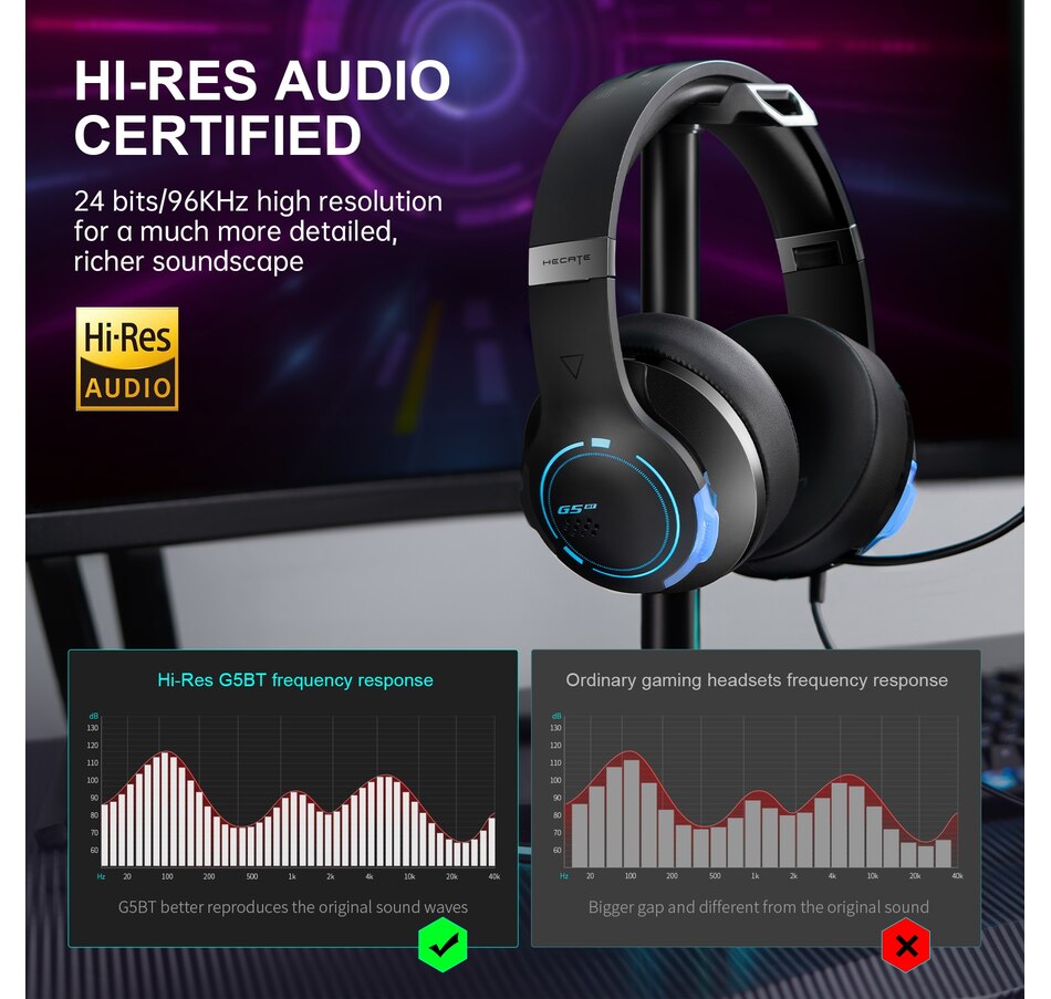 G5BT Bluetooth Gaming Headset, Over Ear Wired Headphones with Mic