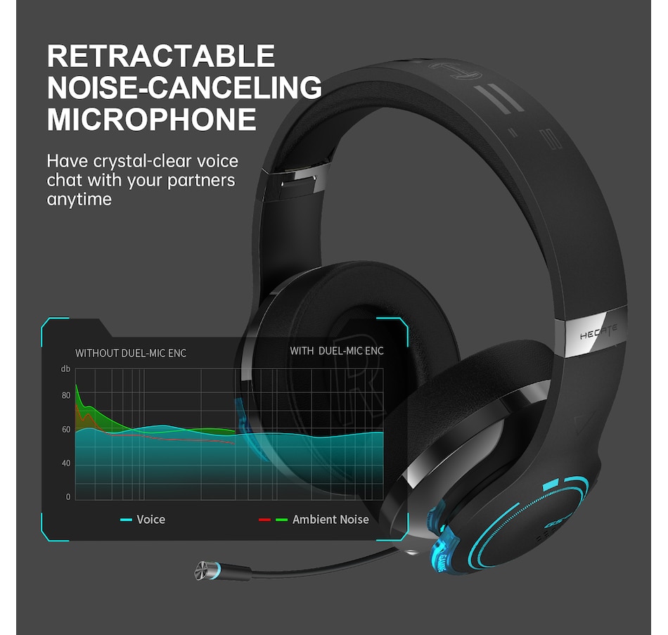 retractable noise-canceling microphone – the omnidirectional microphone can transmit high-quality and clear voice chat with its premium environmental noise-canceling feature.