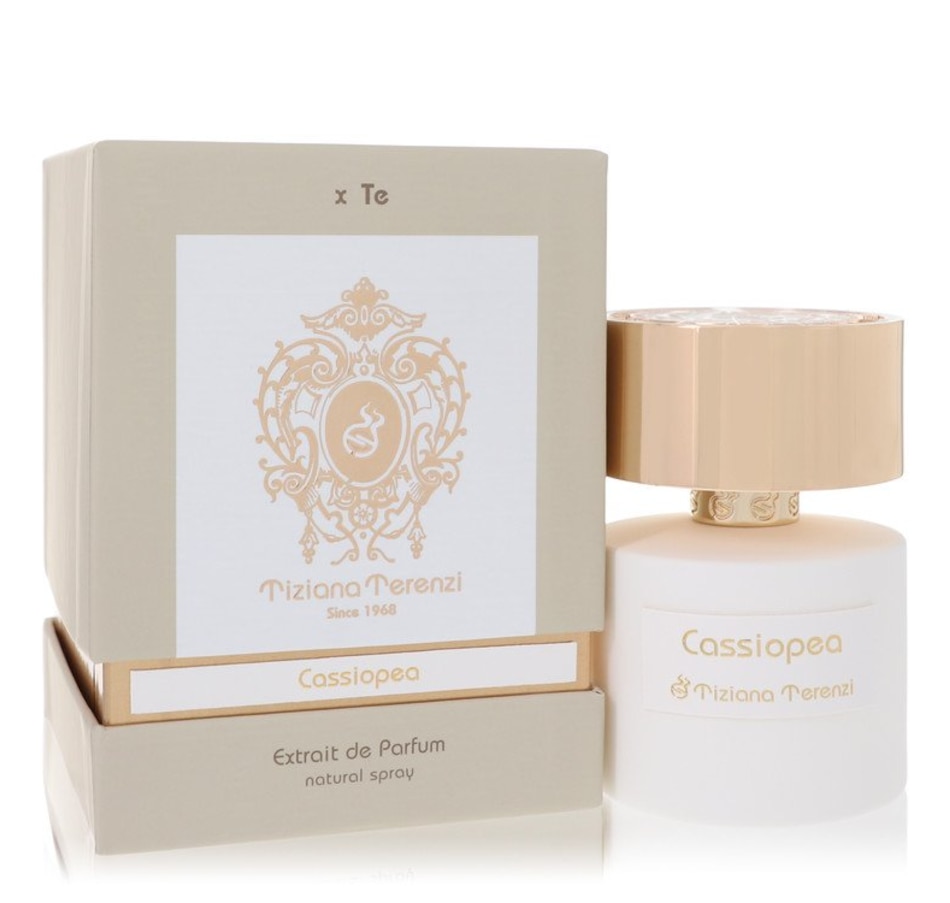 Elegant and ethereal florals mingles with hints of tropical fruits and warm, balsamic woods in Tiziana Terenzi Cassiopea, a honeyed chypre floral fragrance released in 2015. The opening is luminous with citrus and delicate green tones, fusing bright lemon and cassis with exotic nuances of passionfruit and fern. The heart notes are a piquant, fresh floral accord that blends powdery, sweet red rose with shimmering lily-of-the-valley and hints of clove-tinged carnation.