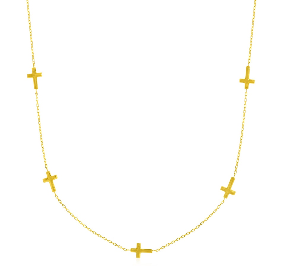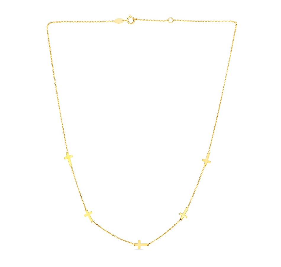 Finely crafted crucifix stations highlight the classic style of this chain necklace. Measures 17 inches and made of 14k yellow gold.
