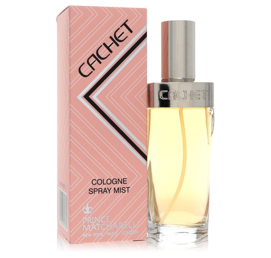 In 1970, Cachet was launched by the very popular perfumer, Prince Matchabelli. This iconic scent is a delicate, airy, floral fragrance for women, with top notes of aldehydes, green grass, spices and galbanum; middle notes are patchouli, orris root, jasmine, vetiver and rose. At the base, leather, amber, musk, civet and oakmoss are found.