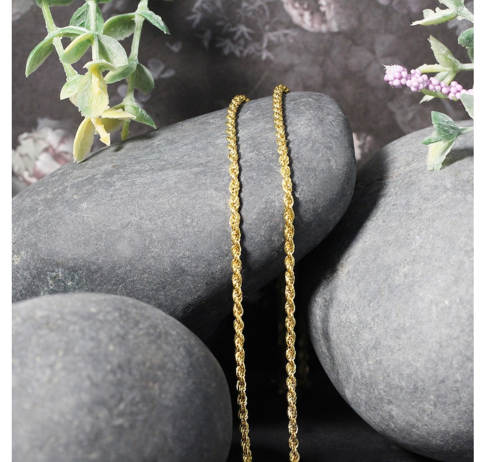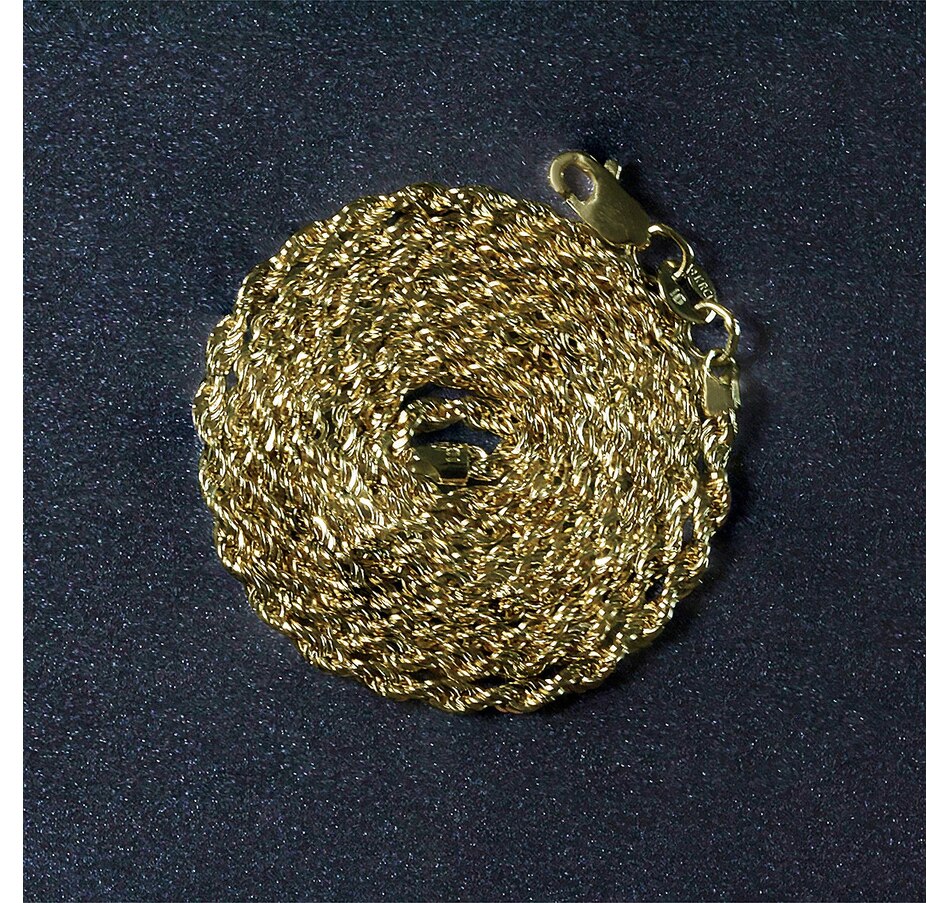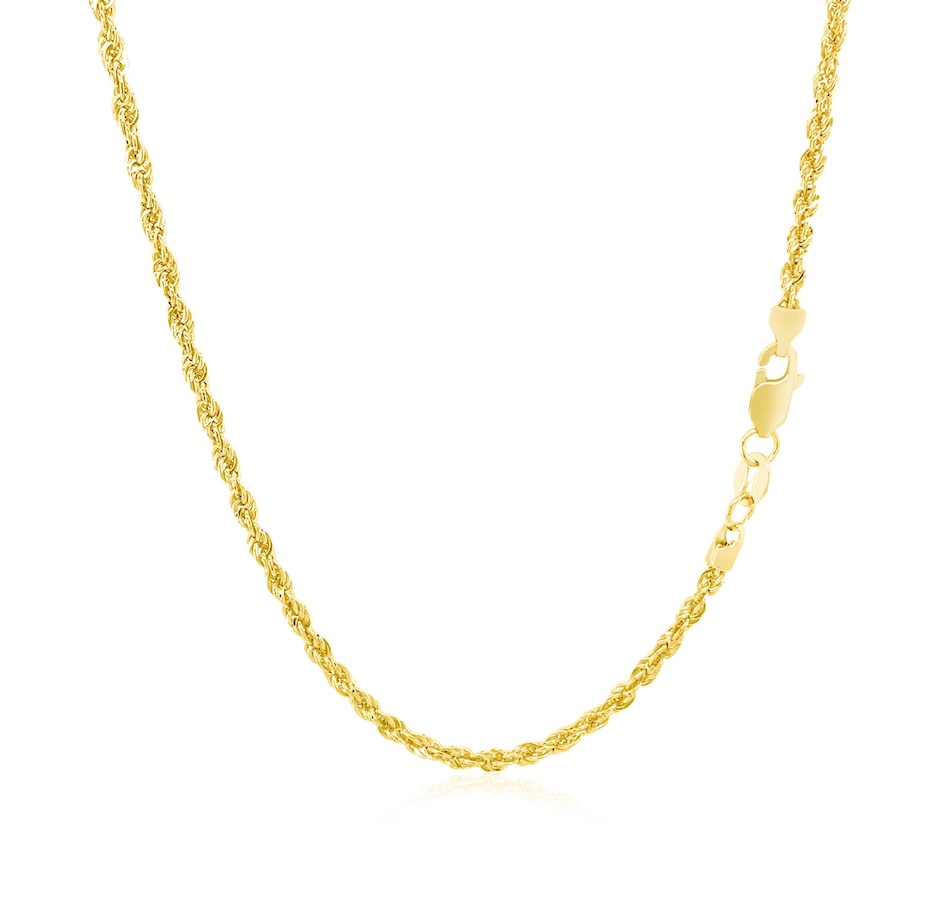 This light rope chain comes in 14k yellow gold and has a width of 2.0 millimeters.