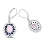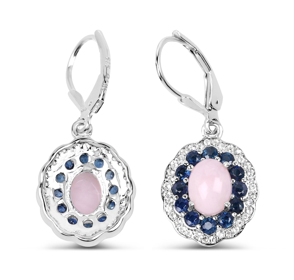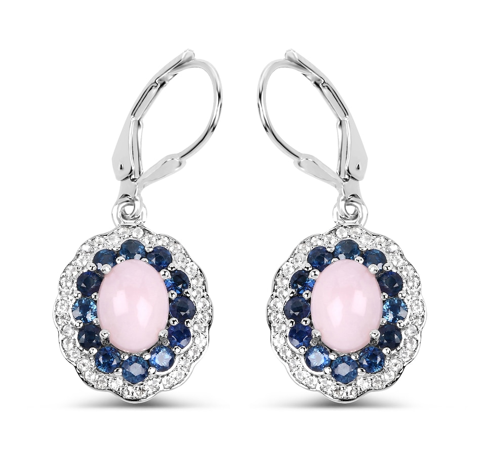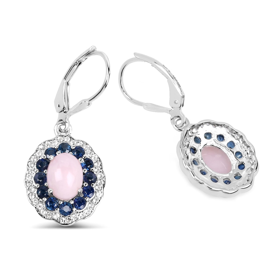 4.00 Carat Genuine Opal Pink, Blue Sapphire and White Topaz .925 Sterling Silver Earrings Pink Opal:Oval/8x6mm 2/2.20 ct.w Sapphire Blue:Round/2.20mm 24/1.44 ct.w Topaz White:Round/1.00mm 72/0.36 ct.w