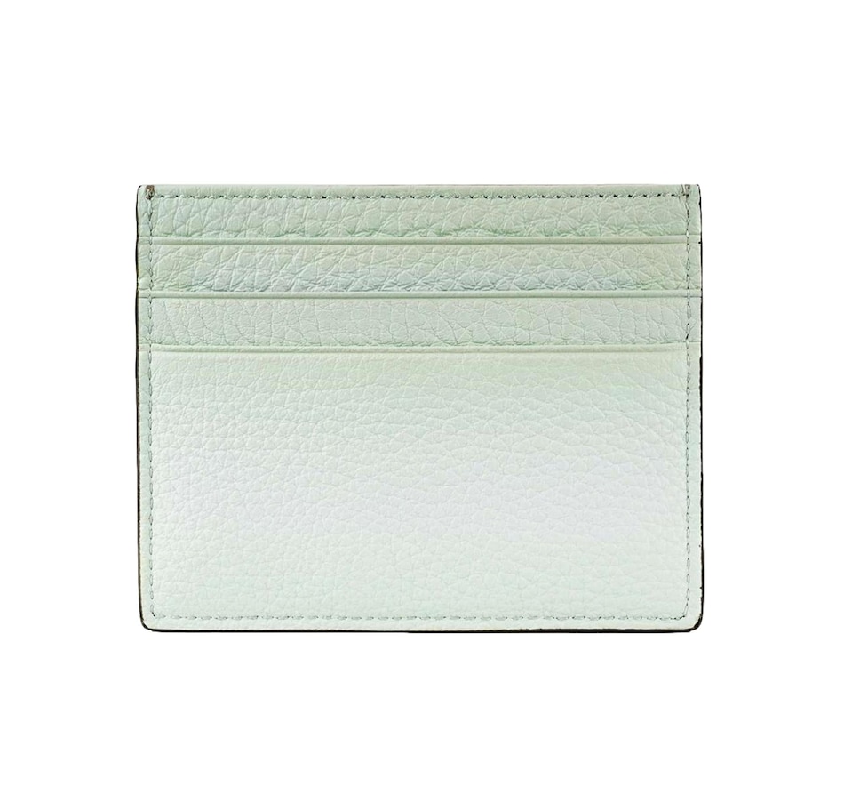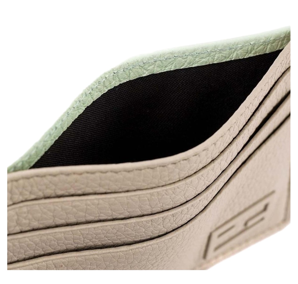 This card case pairs grey and blue grained calfskin leather and the Fendi Baguette logo to create the perfect card case. There are three card slots on each side of the card case separated by one bill slot in the center. This card case is so stylish and perfect for carrying your personal information and credit cards. This card case's sleek style is perfect for both men and women. Model: 7M0164  Grained grey and light blue calfskin leather Six credit card slots One center bill slot Measurements 4 x 0.2 x 3.2 inch (LWH) Includes authenticity cards and Fendi dust bag Made in Italy