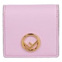 This mini bifold coin case from Fendi is crafted with Lavanda pink calfskin leather. The exterior flap features the F is Fendi logo with a gold finish that opens to a single compartment lined with smooth Lavanda pink leather. Store your coins in style with this elegant piece from Fendi!