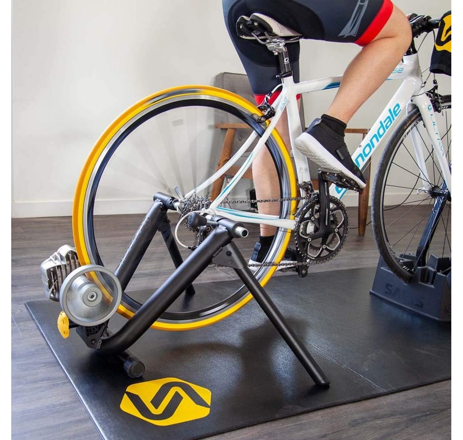 The SARIS Bike Trainers for Indoor Riding is a high-quality smart bike trainer that is perfect for cyclists of all levels. It features a fluid resistance unit that provides a quiet and consistent ride, as well as a progressive resistance curve that offers the widest range of resistance and road-like feel. The bicycle trainer (9907T) also includes a speed sensor that connects to Rouvy, Zwift and other indoor cycling apps. With this smart trainer, you get a combo that’s ready for any virtual – or non-virtual – training ride.