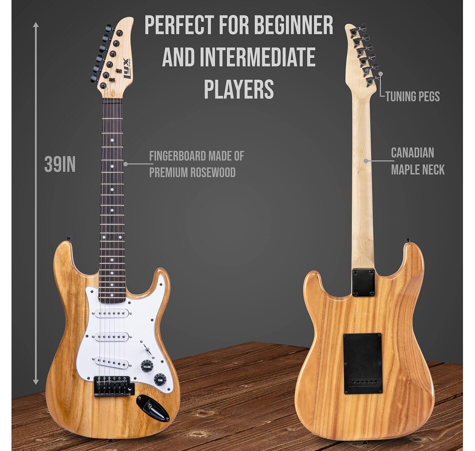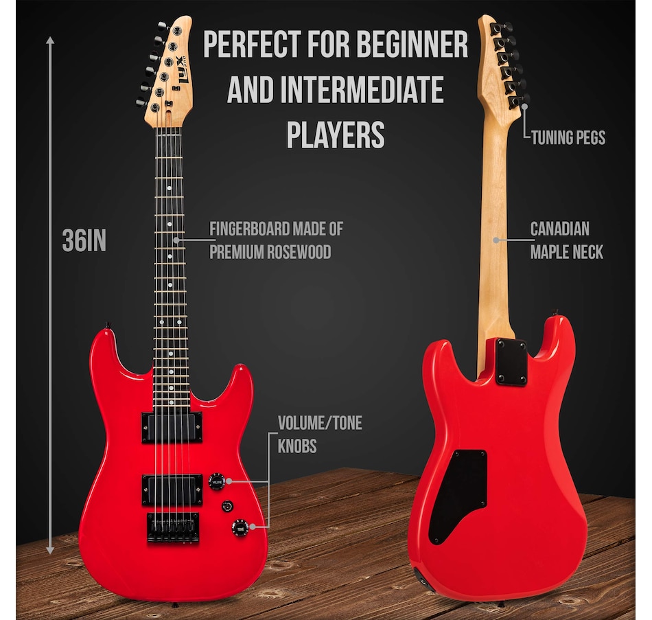 It features a 3/4-sized 30” wooden neck beginner LyxPro electric guitar crafted with premium rosewood, Canadian wood, and sturdy steel strings. This all-in-one Electric Guitar with Amp Starter Kit comes with everything you need to become a rock god, all from the comfort of home. In addition to the 36” Electric Guitar beginner kits in your choice of colors, you’ll get 6 strings, 2 picks, a tremolo bar, a guitar cable, a shoulder strap, and a handy carry bag. The guitar in the electric guitar bundle features high-quality materials including premium rosewood fingerboard, canadian maple neck, volume/tone, knobs & more. The electric guitar starter kit also includes a clip-on 440Hz Digital Tuner that makes sure your instrument is perfectly tuned before you start playing.