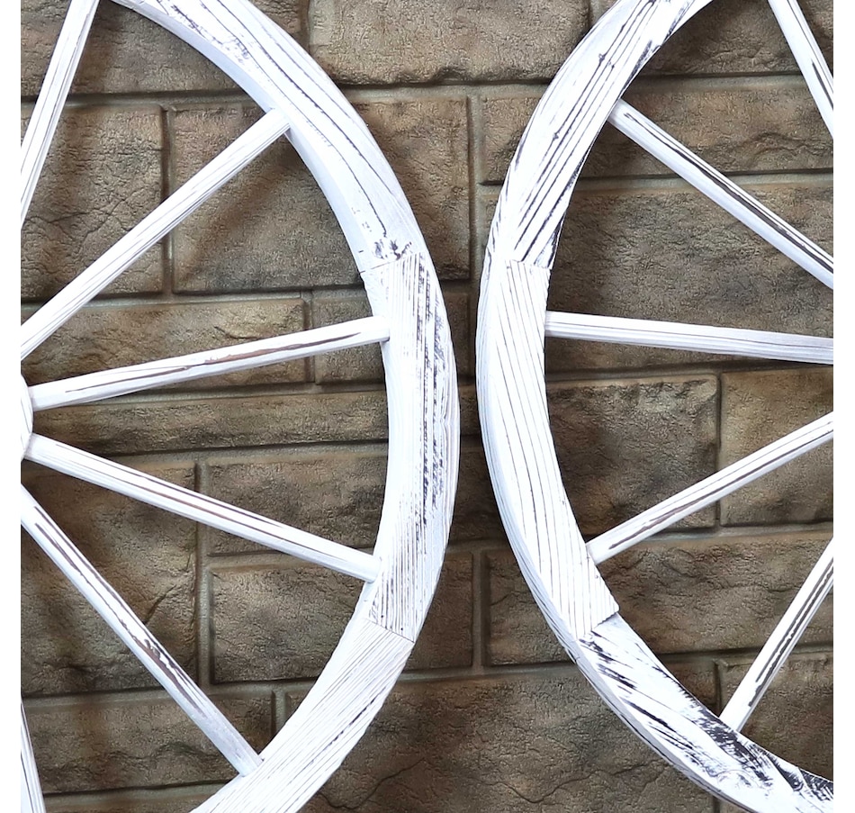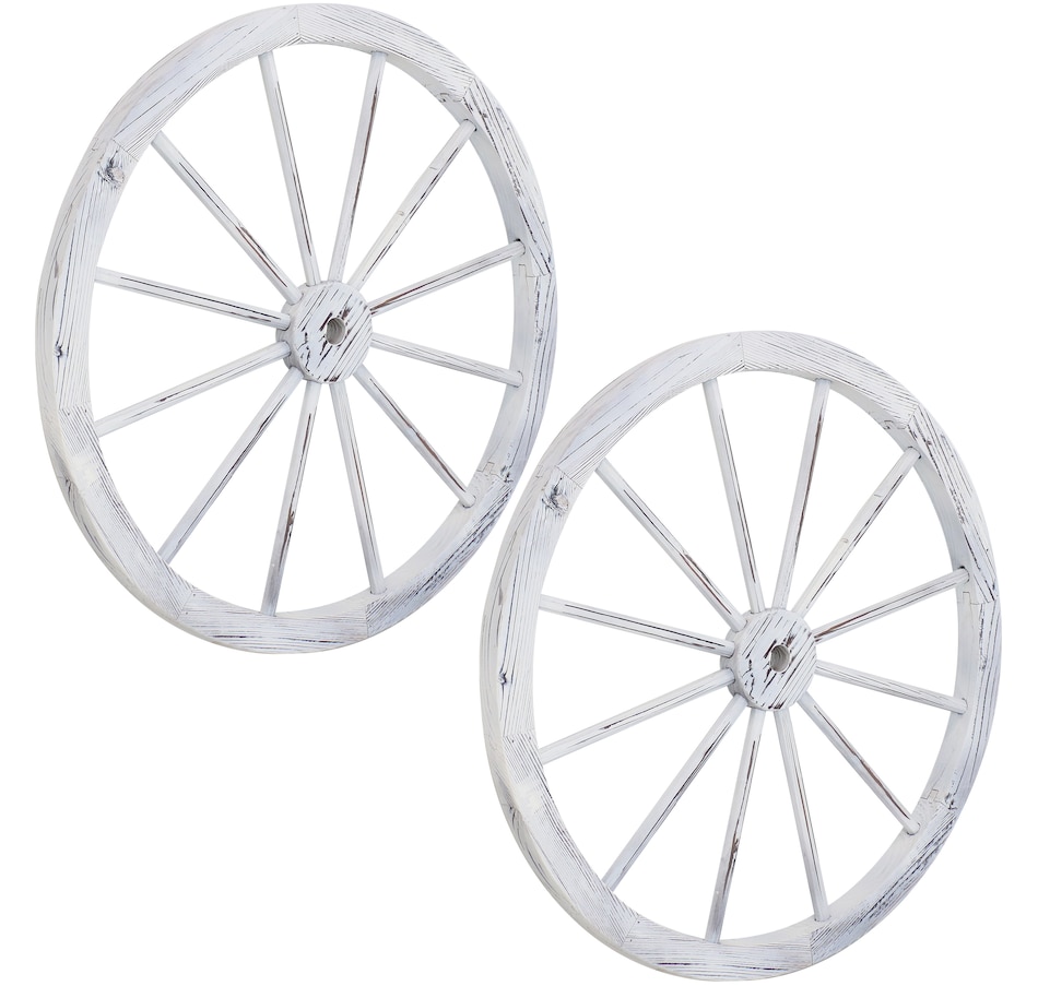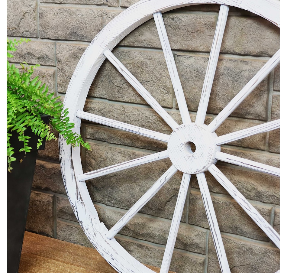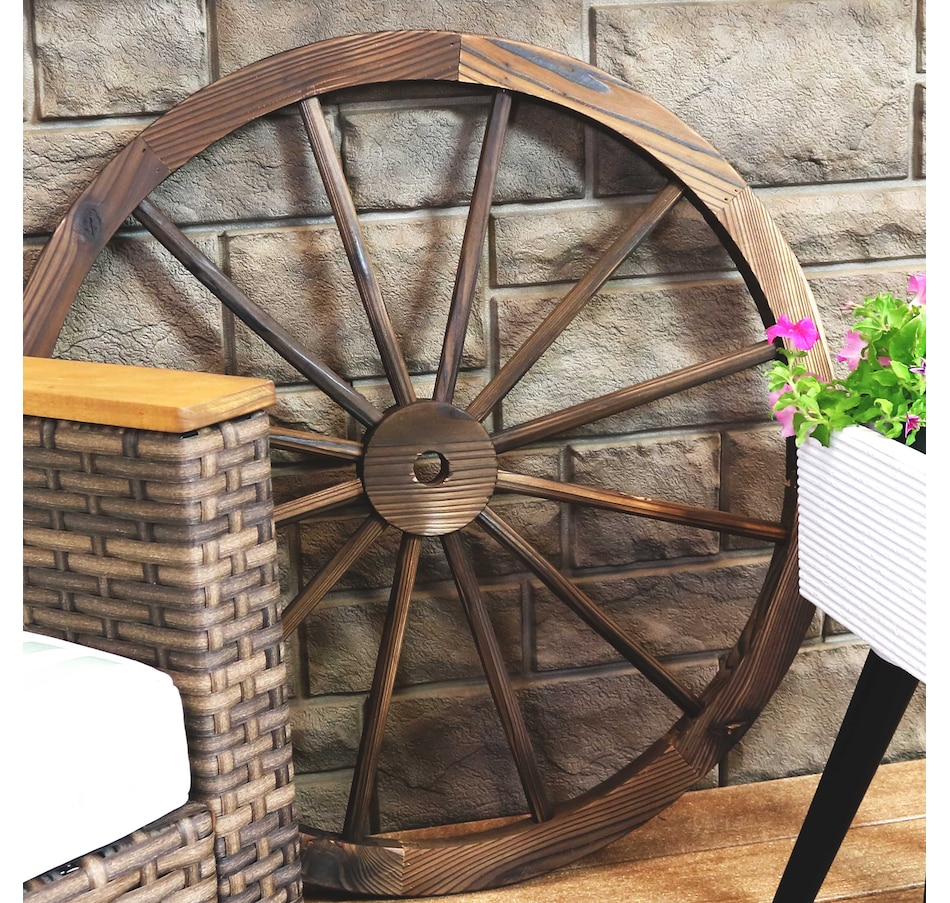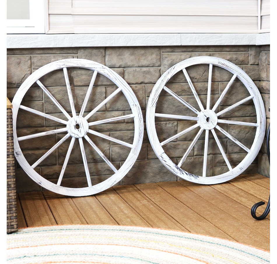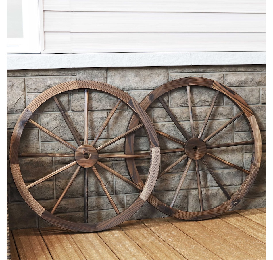 Give the backyard, garden, patio, porch, or front lawn a touch of the Old West with this decorative, wooden wagon wheel. Constructed of natural fir wood, this versatile piece of decor can be used both indoors and outdoors. Place it within bushes, flower beds, or stand it on its own to showcase that Western-style goodness. It can also be placed leaning against a wall or fence or mounted to a wall for an eye-catching accent (please note, hanging hardware is not included with this item and must be purchased separately). The best part is that it already comes assembled, so it can be placed it in its preferred location right away. It's great for decorating the home inside and out, so whether it's placed in the front yard, or hung up in the dining room, this decorative piece is sure to add a quaint touch.