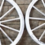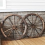 - Antique wood wagon wheel style enhances Western themes