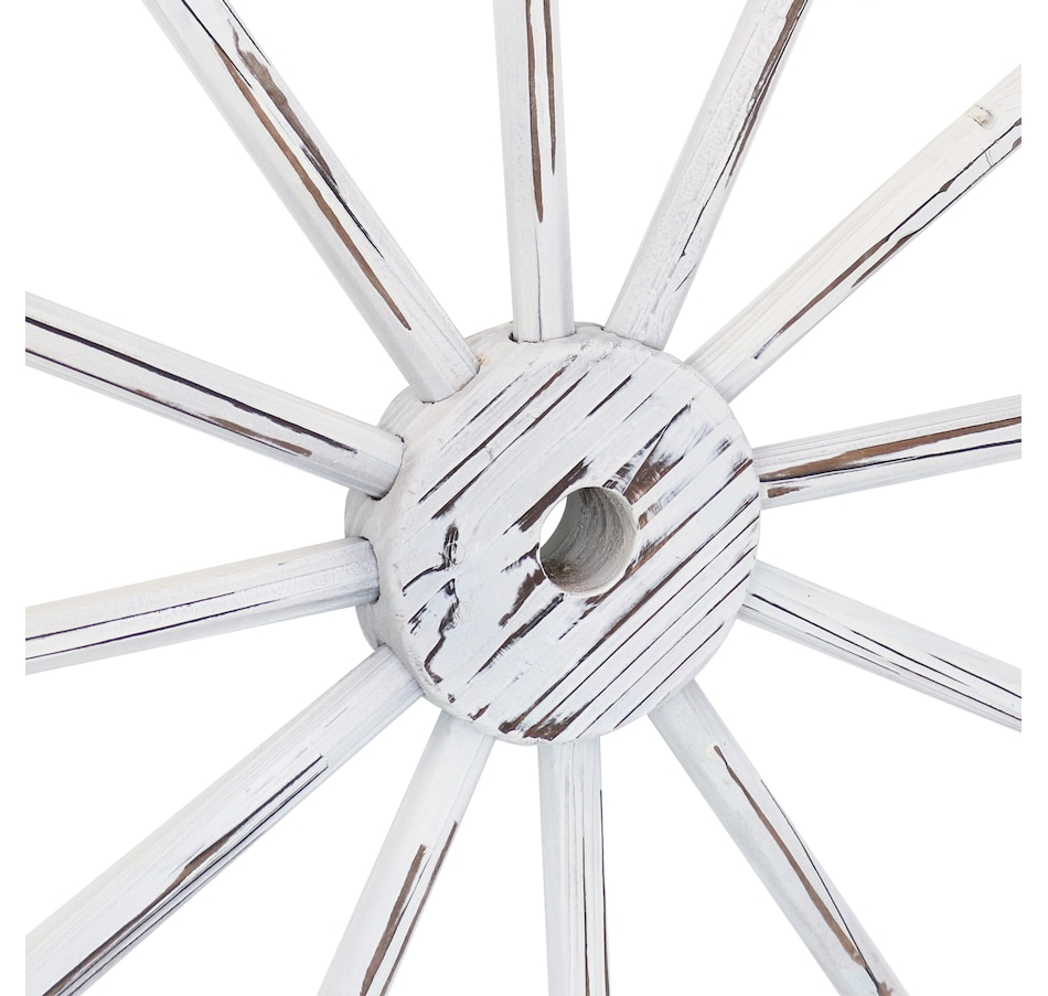 - Wagon wheel wall decor arrives fully assembled