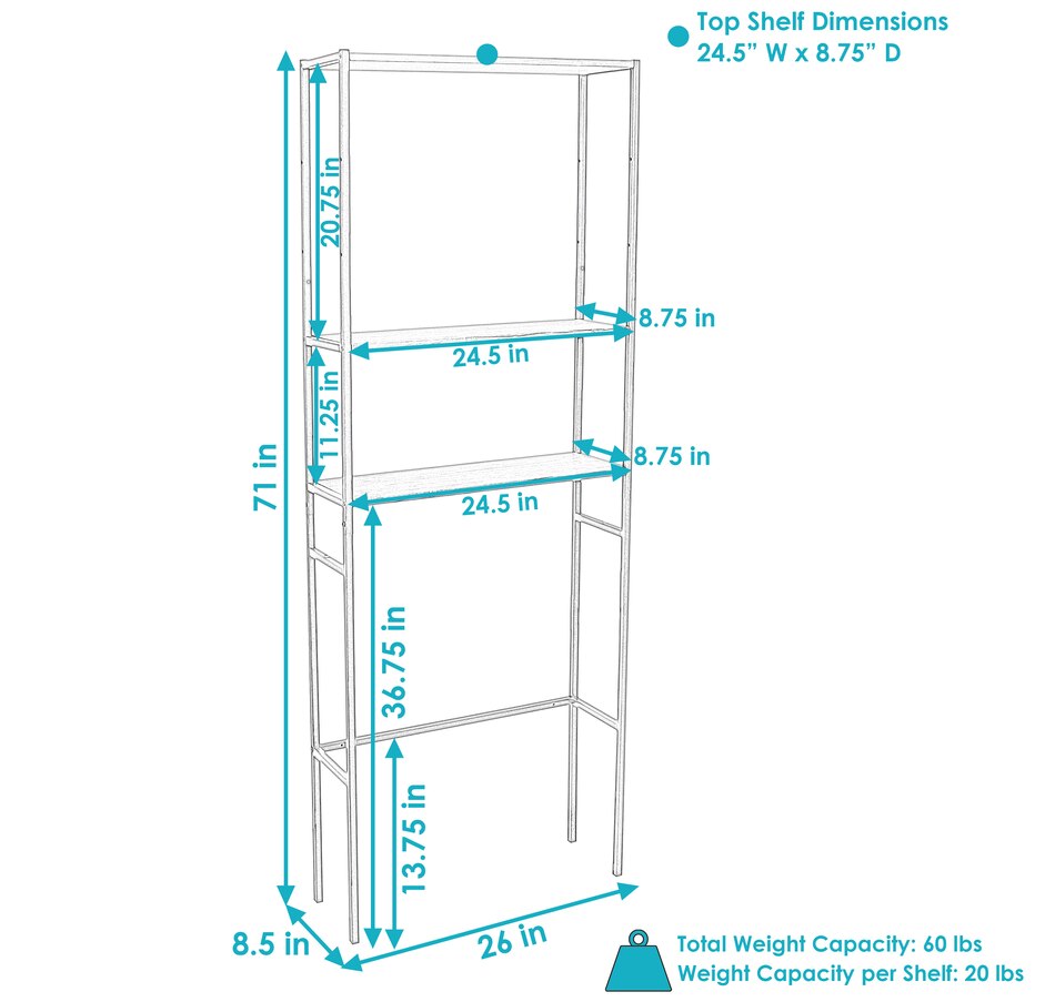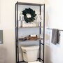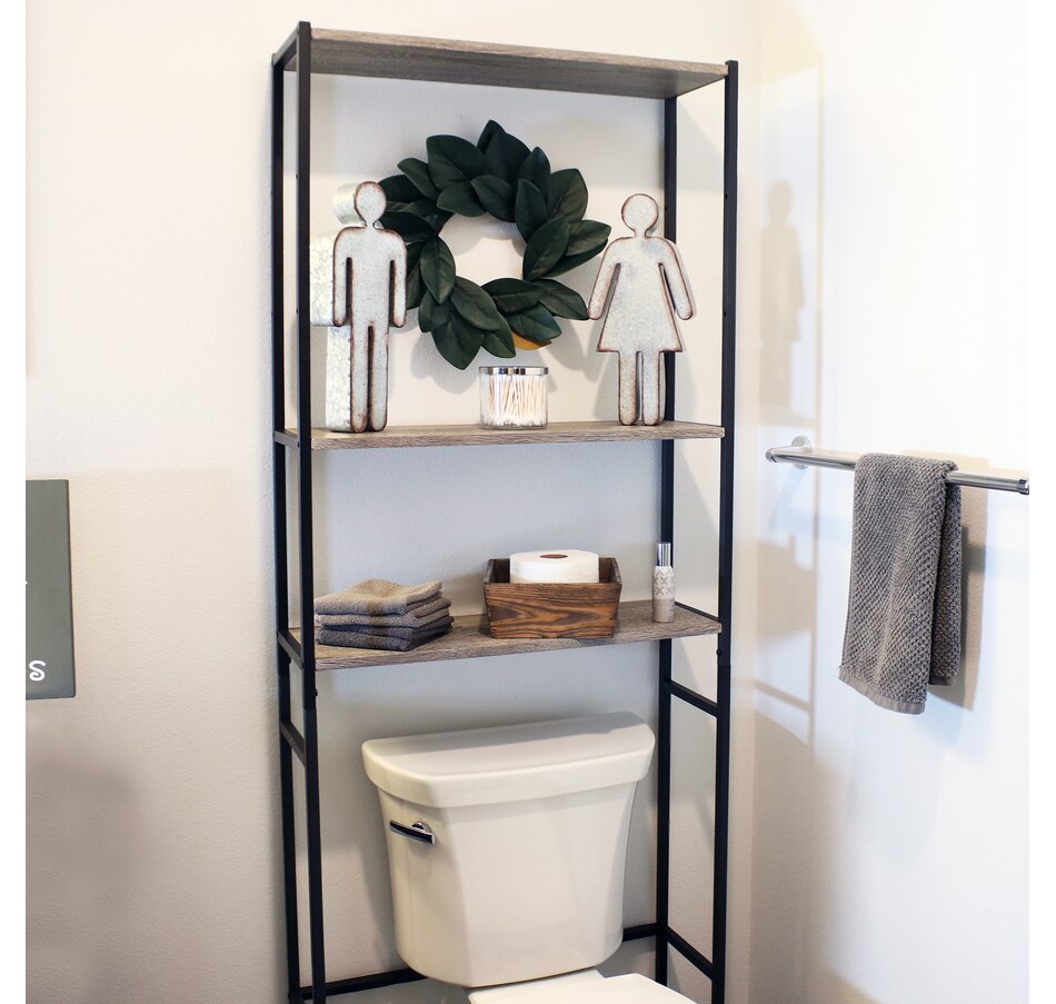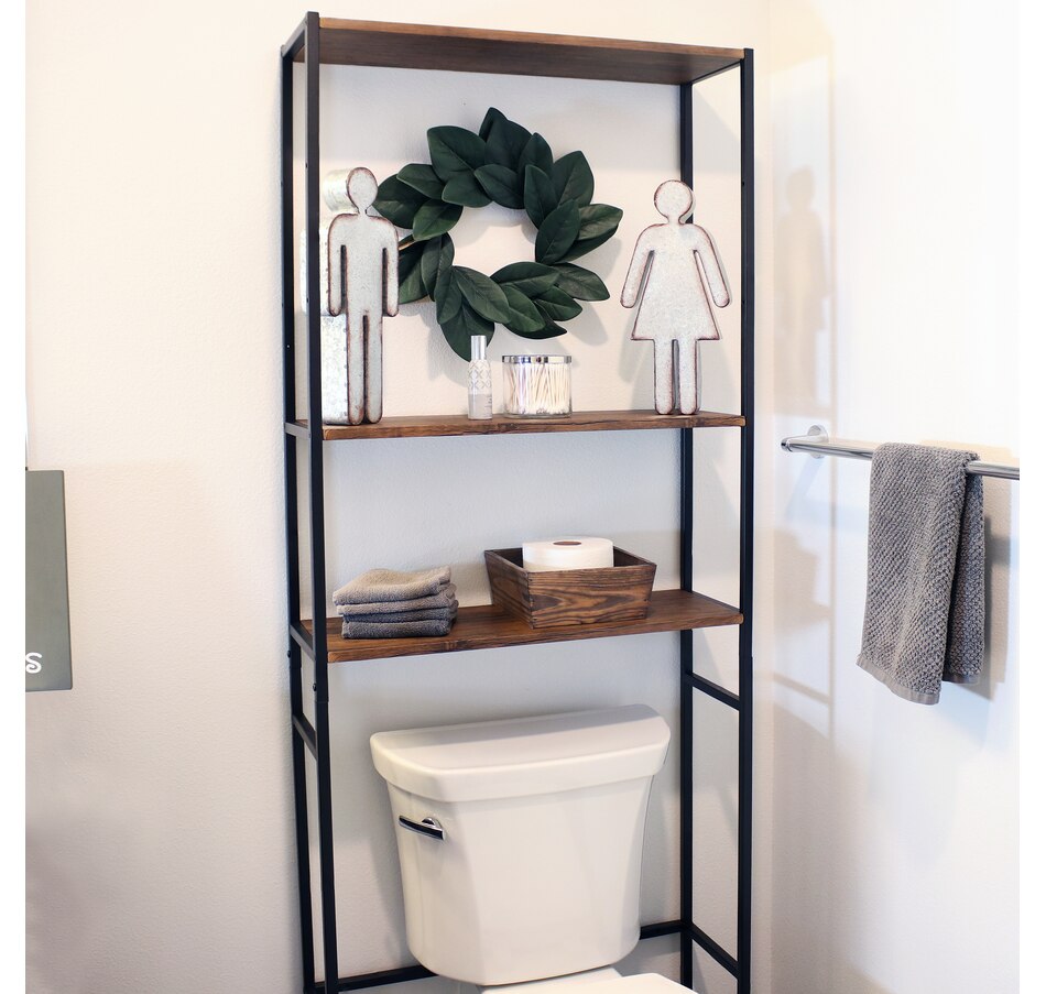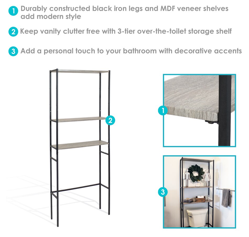 Keep the bathroom organized and stylish with this 3-tier over-the-toilet bathroom storage shelf. Great for spaces small and large, this rack provides an attractive vertical storage solution for any bathroom. Place additional hand towels, washcloths, and toiletries on the shelves to have them on hand when needed. Its convenient design positions the shelf directly above the toilet so there is plenty of room to display and store belongings without taking up a lot of valuable floor space. This product includes all the components and hardware necessary for assembly, but it does require a Phillips screwdriver and a power drill with a 9/32" (7 mm) drill bit to put it together (not included). Place this shelf over a toilet for convenient bathroom storage, or place it in any living room, bedroom, office, or other area in need of a few extra shelves for storage or decor! Its industrial-inspired design will complement any decor style.