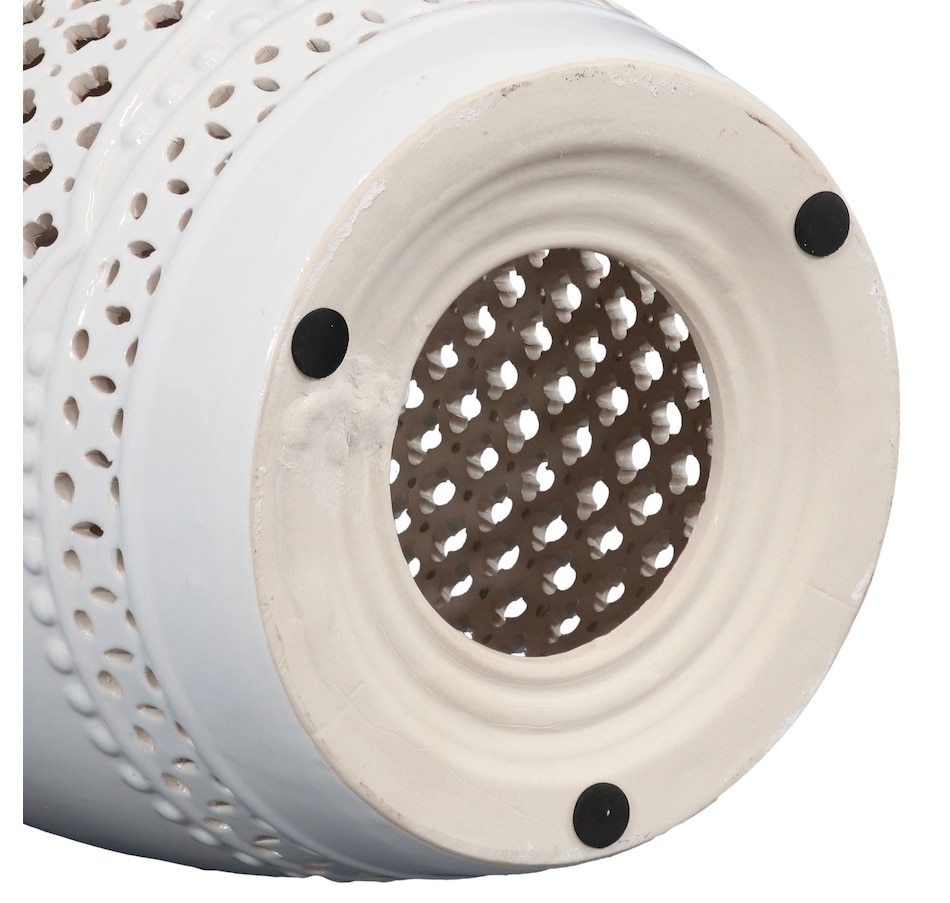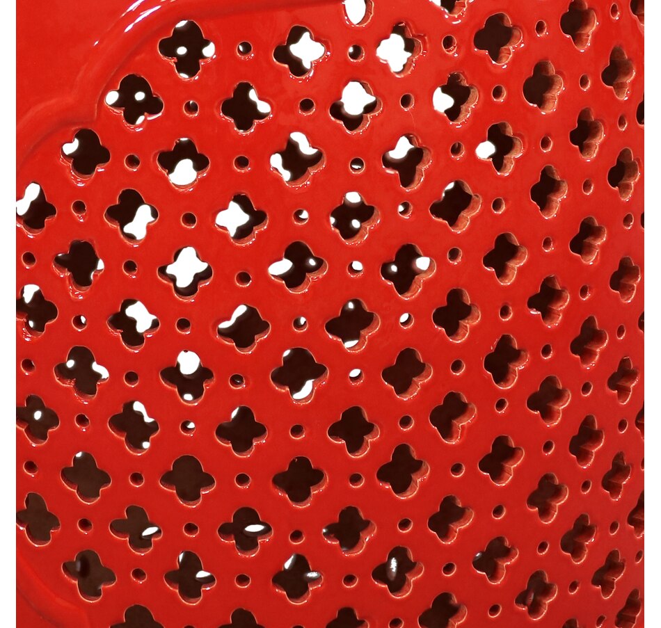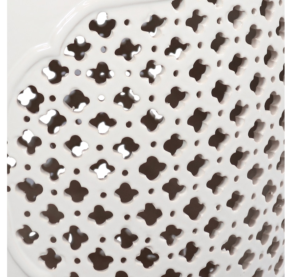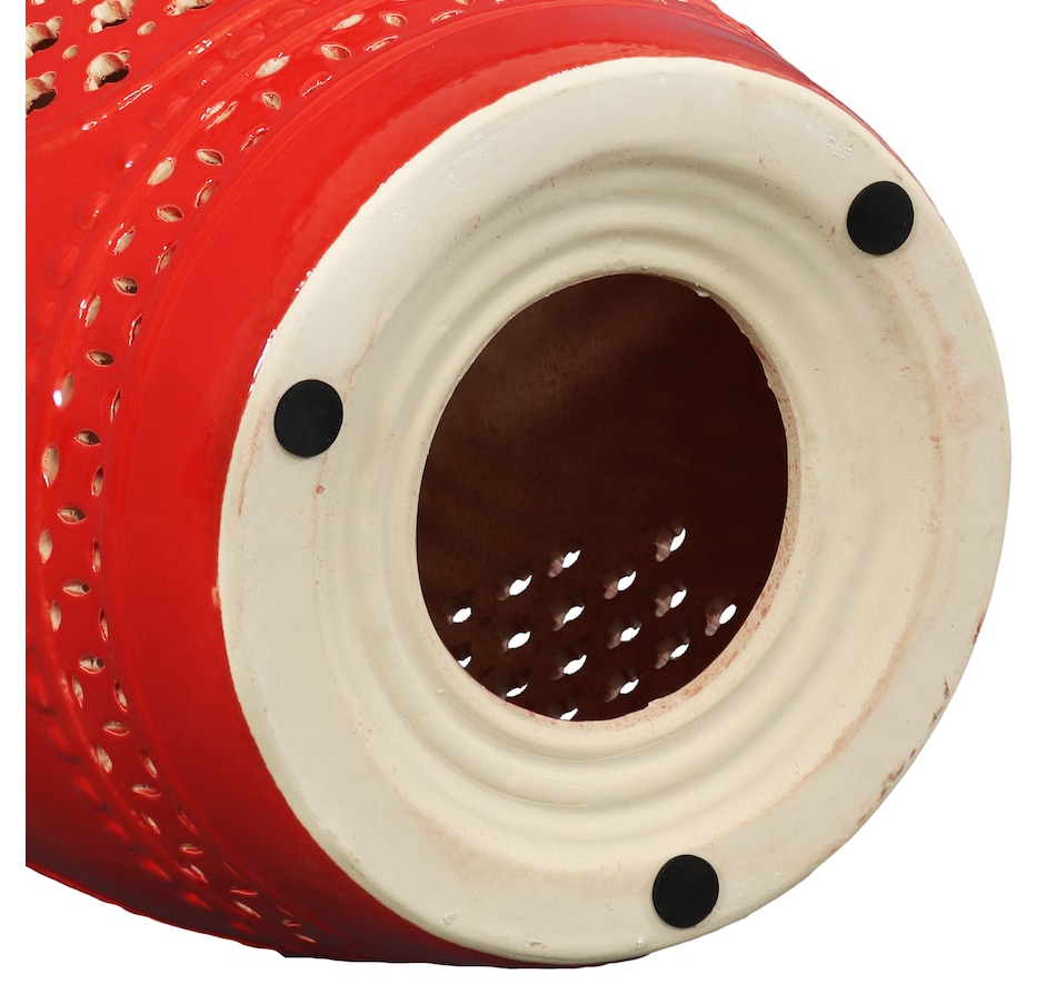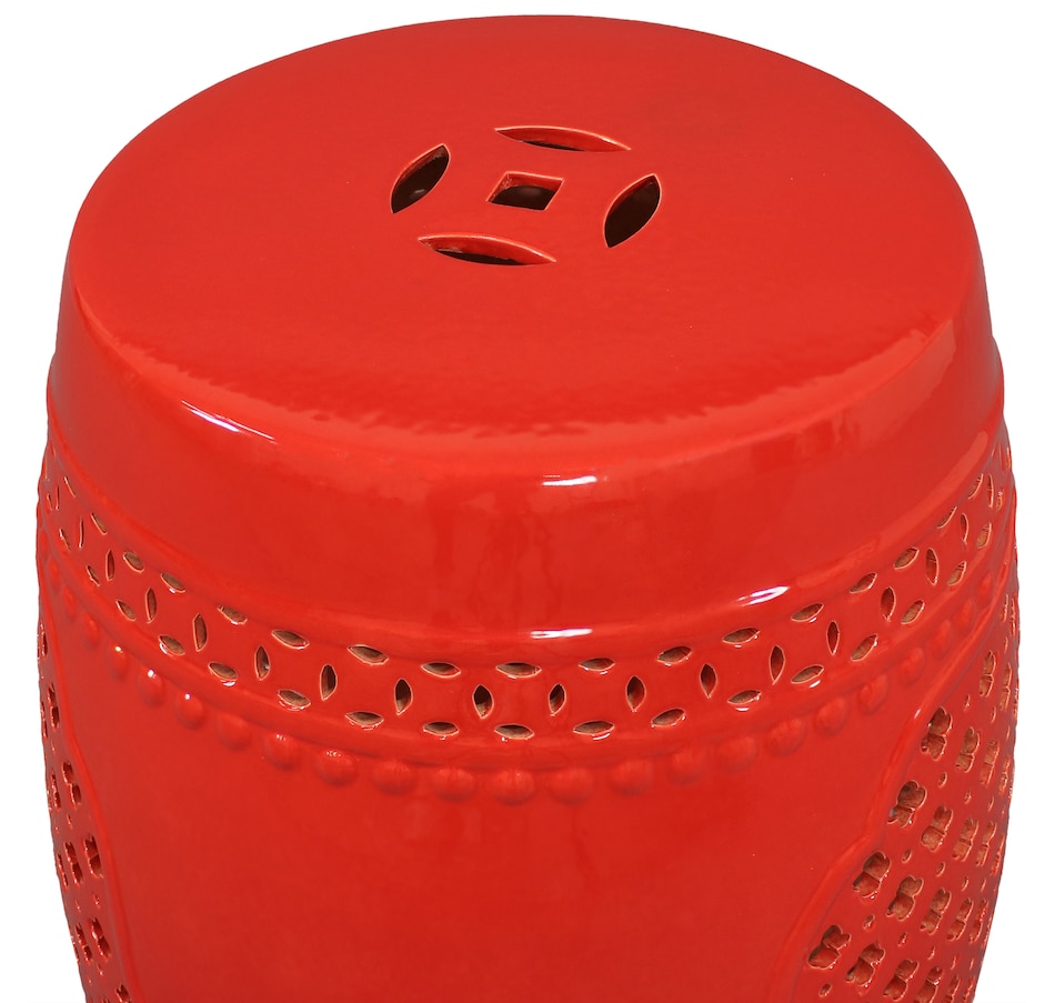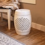 Add an elegant touch of Marrakesh lattice to the garden, sunroom, living room, or patio with this stylish ceramic drum inspired garden stool. This lovely garden stool decor piece is highly versatile and can be used as an end table, a footrest, or as a decorative accent in a variety of indoor or outdoor locations. Beautifully crafted, this decorative garden stool features a vibrant glazed finish and an intricate lattice design to add the right amount of color and style to any space. This modern and stylish stool is made out of durable ceramic material and will stand strong against harsh wind and rain when placed outside. Due to the protective coating, the color of this stool isn't going to wear away easily from excessive sun exposure either! Keep this stool nearby on the porch or back patio to keep drinks, books, or snacks close. Or place this stool in the garden for an easy spot to relax.