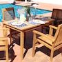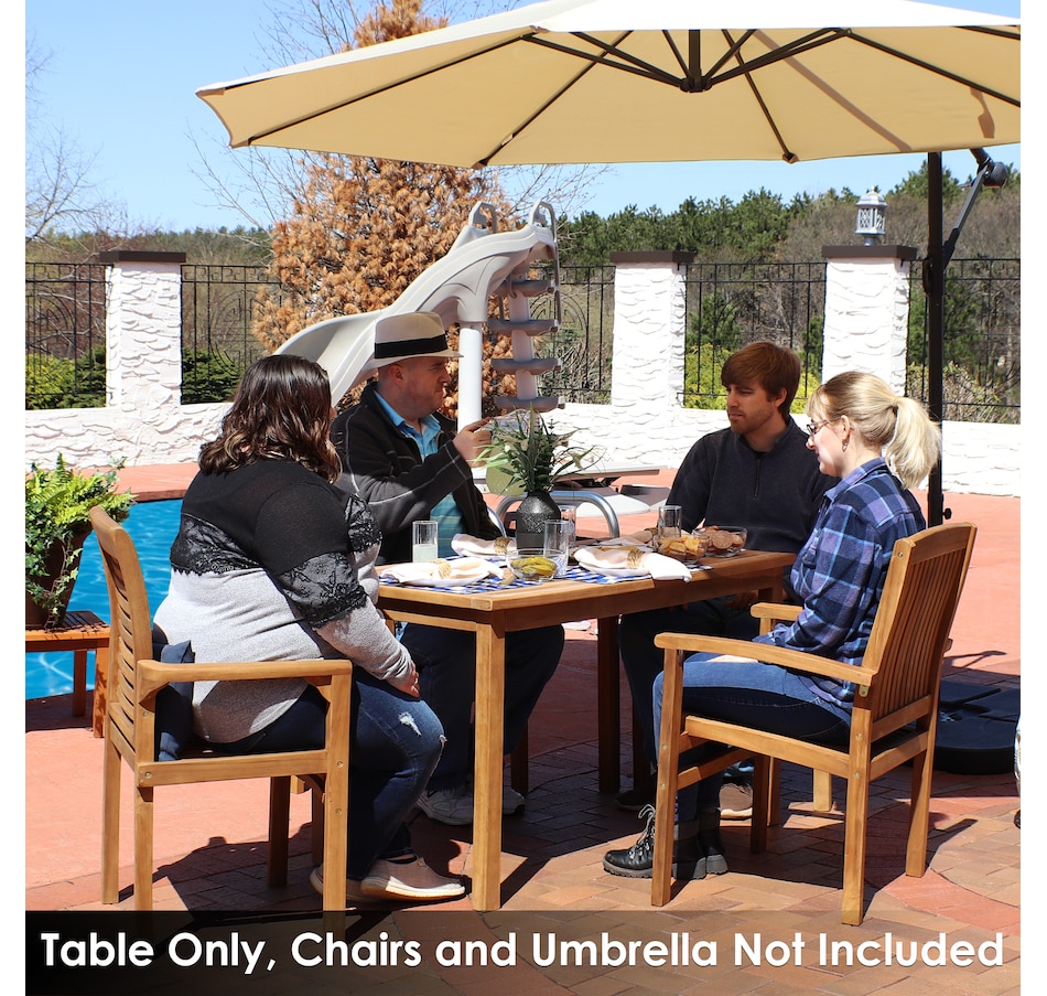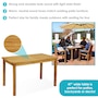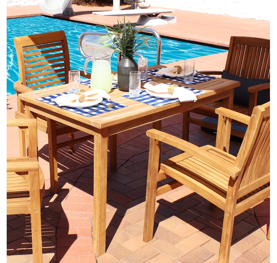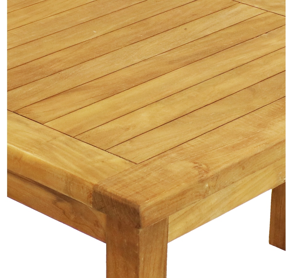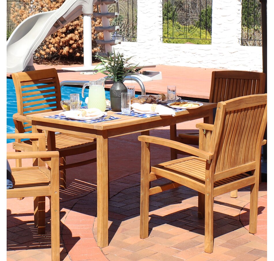 Enjoy every meal outdoors or indoors with this conversation, teak wood, rectangular dining table featuring a light wood stain finish. Invite friends, family, and neighbors over for a bit of fresh air, good food, and great company. This dining table is sure to provide style and function for your space and will quickly become the go-to dining table for relaxing nights. This table features a premium, weather-resistant teak construction with a light wood finish for long-lasting strength and beauty. During storms and high-moisture conditions, be sure to cover or bring this set indoors to ensure long-lasting use. The teak wood design also creates a natural and elegant feature to any space and is sure to complement any existing decor wherever desired. This piece is sure to add a classic, natural, and functional feature to any location. Grab candles, centerpieces, florals and potted plants, and any other decor to set on this countertop and enjoy your outdoor space with ease.