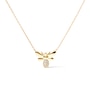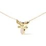 Introducing a captivating symbol of nature's beauty, this exquisite 10K Yellow Gold Bumble Bee Pendant Necklace is a must-have for any woman who appreciates elegance and grace. With delicate diamond accents adorning its charming design, this necklace effortlessly radiates a sense of sophistication. Crafted with meticulous attention to detail, this pendant showcases 14 round diamonds accented in a pave setting, enhancing their brilliance and sparkle. The H-I color diamonds exude a mesmerizing glow, while the I1-I2 clarity ensures a captivating clarity. Suspended from an 18" inch chain, this necklace boasts a spring ring clasp, providing secure and comfortable wear. Perfect as a gift or a treat for yourself, this bumble bee pendant necklace is a timeless treasure that will elevate any ensemble with its enchanting allure.