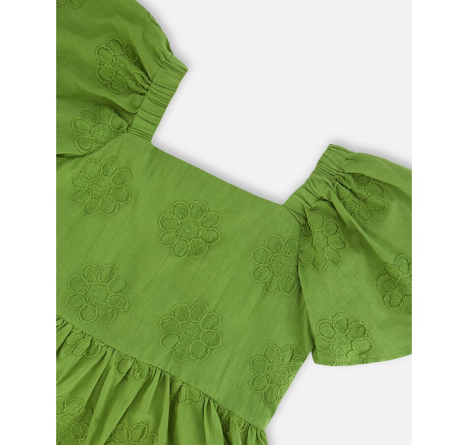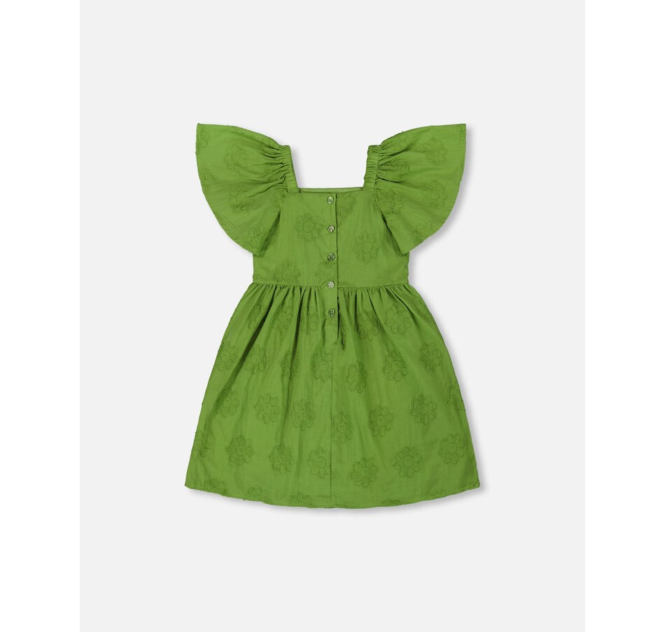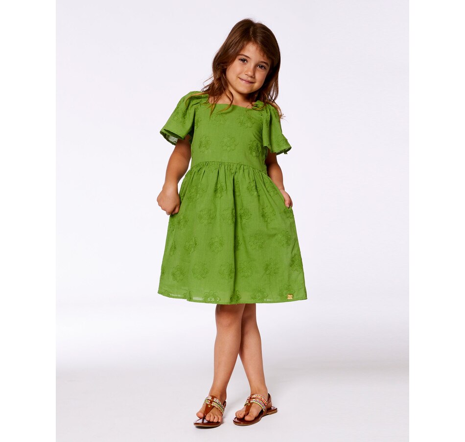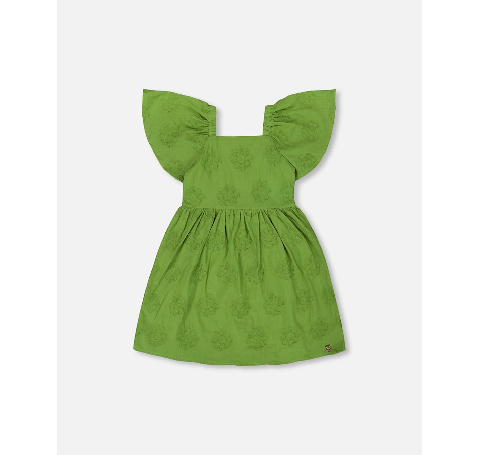 Embroidered flowers add a touch of texture to our Frill Sleeve Dress with Embroidery Green. In soft cotton fabric, this pretty little dress features short flutter sleeves, a square neckline, and a flared A-line skirt that makes it oh-so-comfortable to wear!