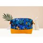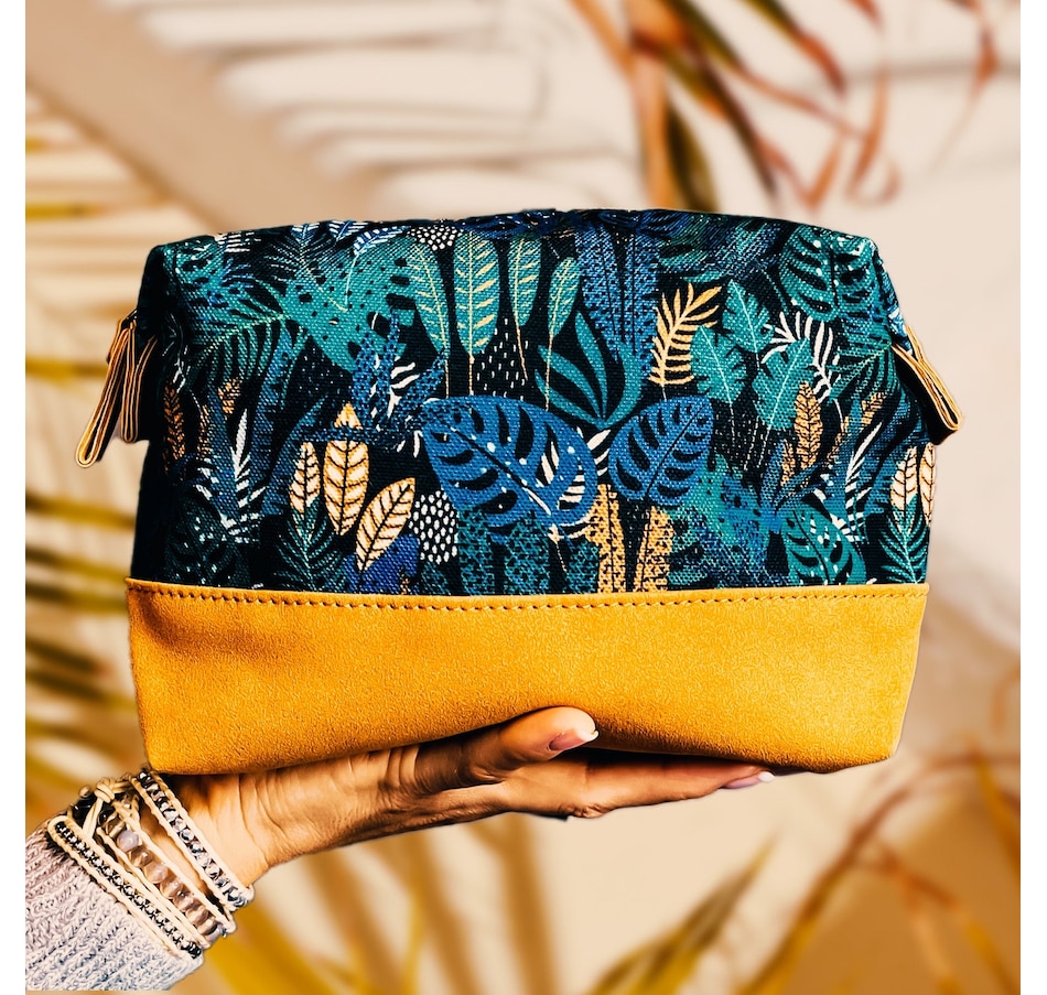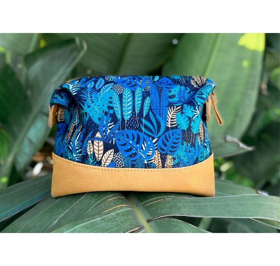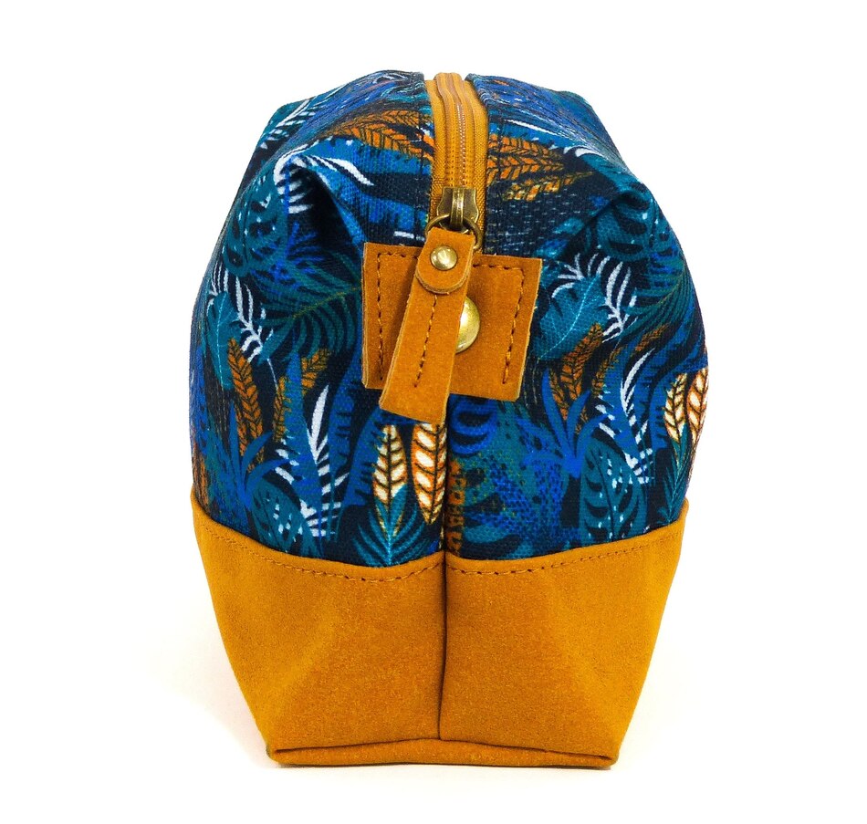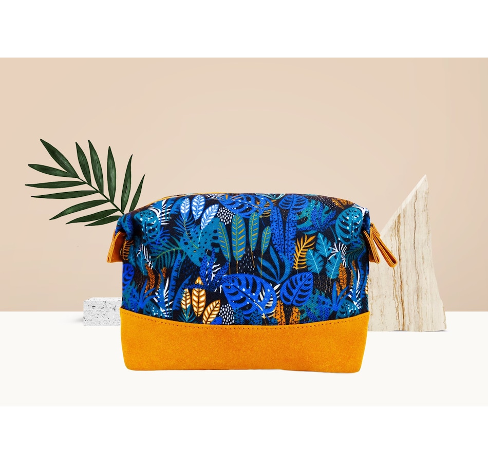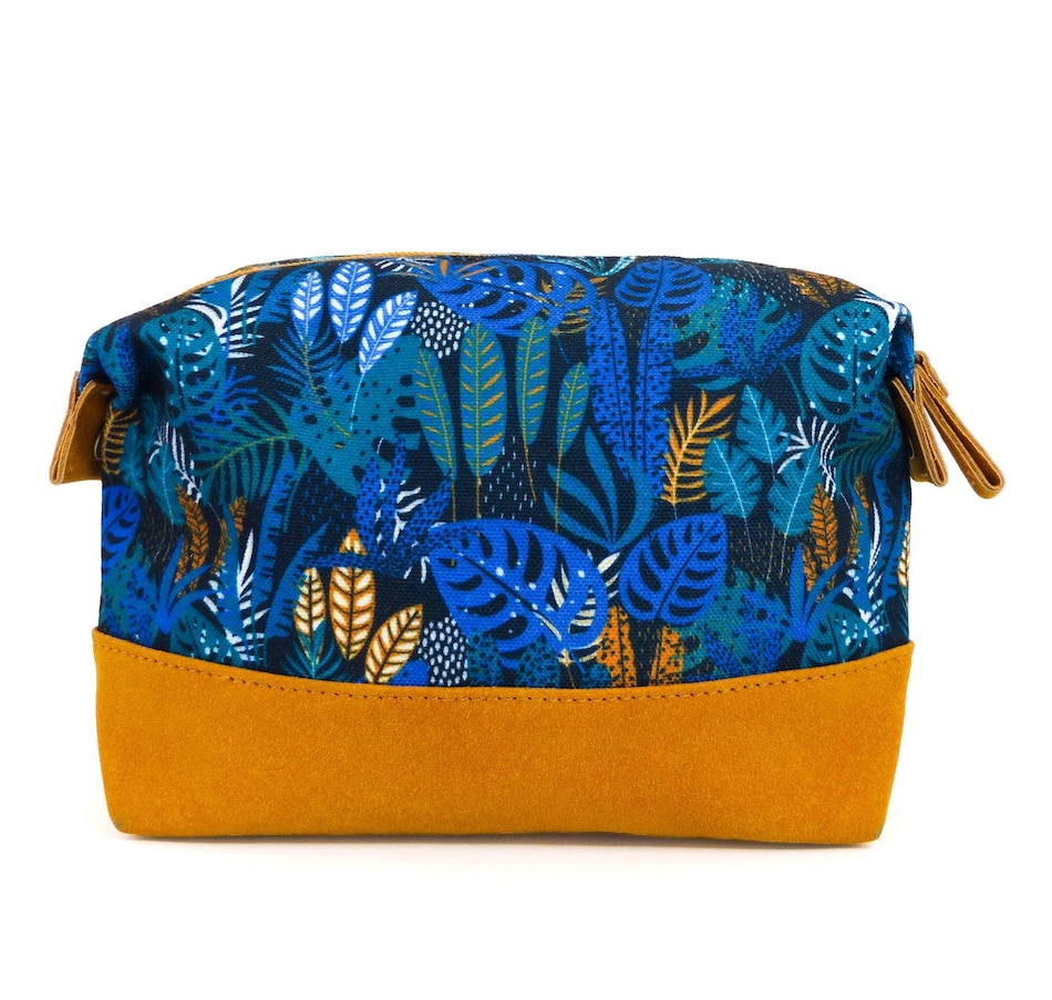 Elevate your travel experience with our Stylish Travel Toiletry Bag for men and women. Designed for both practicality and fashion, this sleek and compact bag keeps your essentials organized and easily accessible while on the go, ensuring you stay stylish wherever your adventures take you.Key Features:Efficient Organization: Multiple compartments and pockets offer ample space for all your toiletries, ensuring they stay neatly organized throughout your journey.Sleek Design: With its modern and minimalist design, this toiletry bag adds a touch of sophistication to your travel accessories.Compact Yet Spacious: Despite its slim profile, this toiletry bag provides enough room to store all your grooming essentials securely.Durable Construction: Crafted from high-quality materials, including sturdy zippers and reinforced stitching, this bag is built to withstand the demands of travel.Convenient Carry: Features a sturdy handle for easy carrying and a compact size that fits effortlessly into your luggage or carry-on.Versatile Use: Ideal for business trips, vacations, or weekend getaways, this toiletry bag is a versatile travel companion for any adventure.Stylish Travel Essential: Make a statement with our Stylish Travel Toiletry Bag - the perfect blend of fashion and function for the modern traveler.Dimensions:7.25" x 10.75"Exterior Fabric:100% Cotton Canvas Upper100% Faux Suede Base (vegan)Wild About You Blue Tropical PatternInterior Fabric:100% PolyesterGive.One.Backâ„¢4.4% of our proceeds are donated to help children in foster care through our Give.One.Back.â„¢ program. Learn more about our Give.One.Backâ„¢ program.