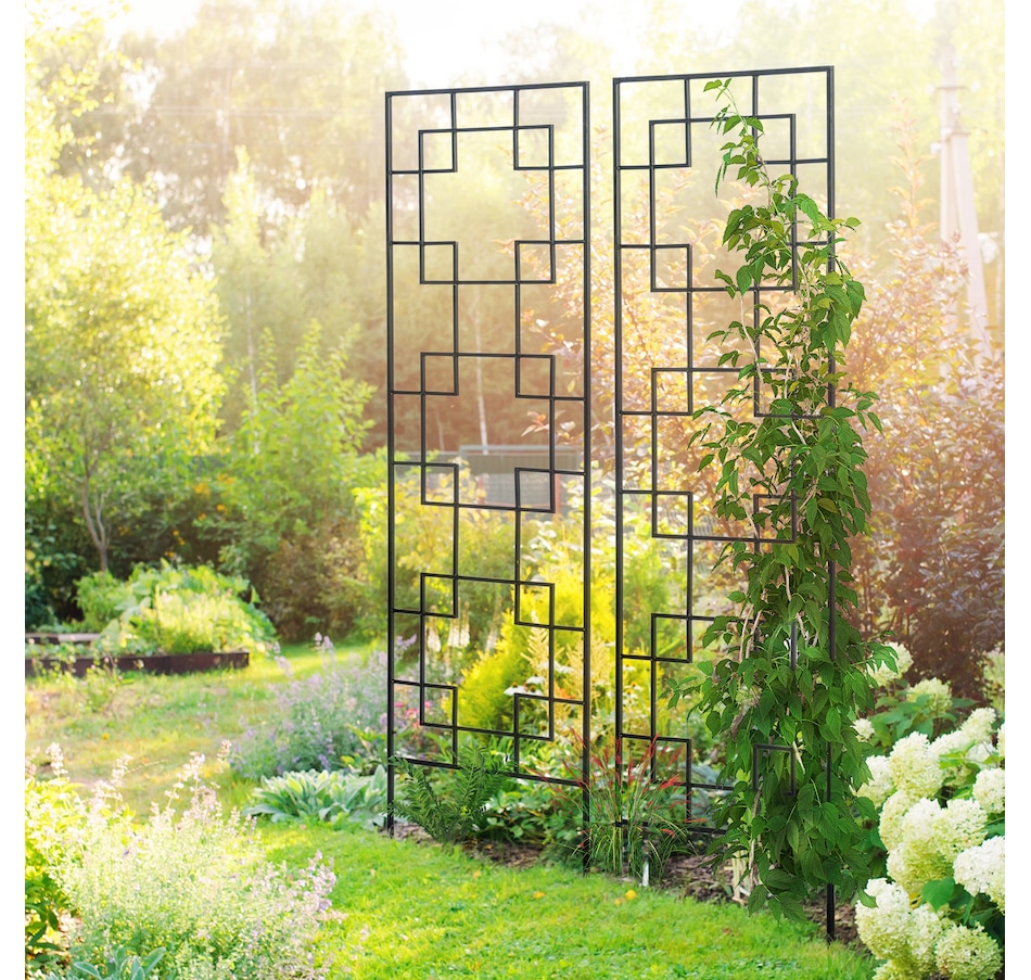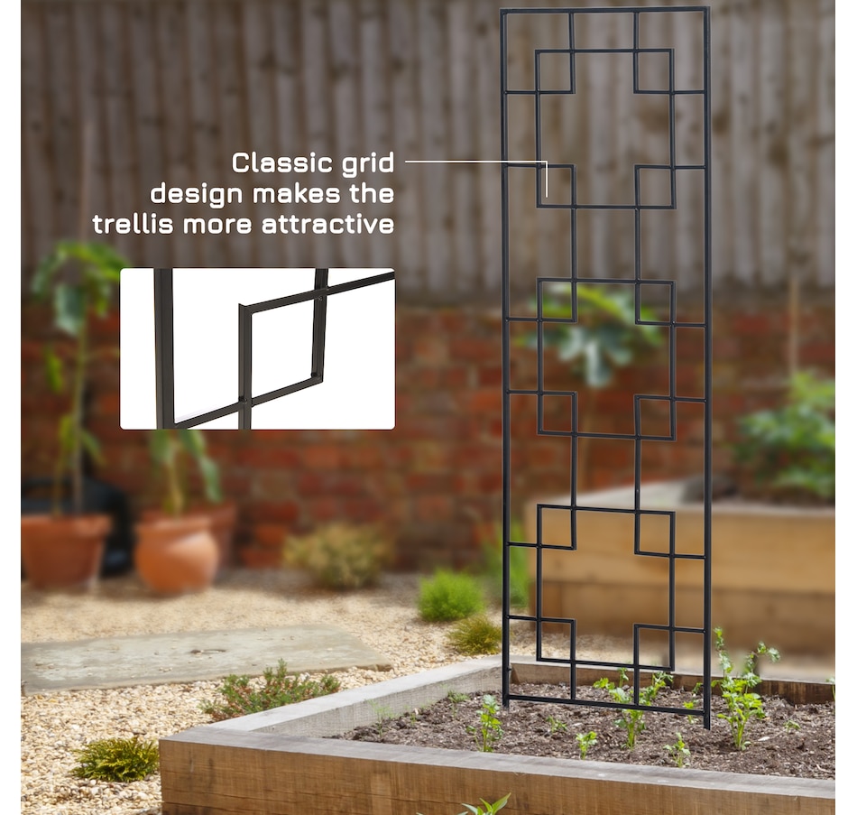 These 2-piece metal trellis panels from Outsunny give climbing plants the support they need to grow and enhance your garden with their elegant look. The metal trellises feature a classical grid design that subtly offsets the densely-branched green space. It can also form a screen with more of it to add height and variety to your lovely garden.