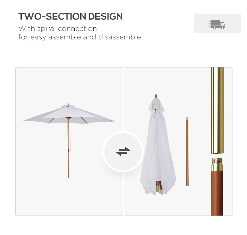 ● ⌀9' deck umbrella with 6 ribs provides sun shade and rain shelter protection