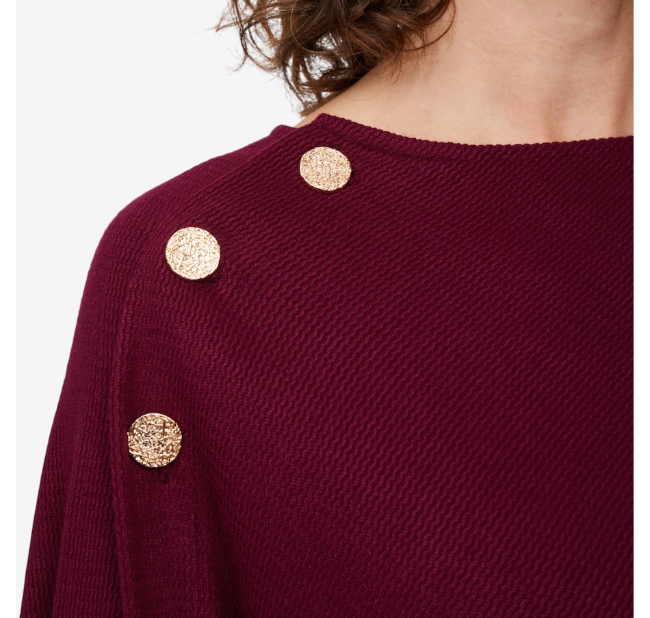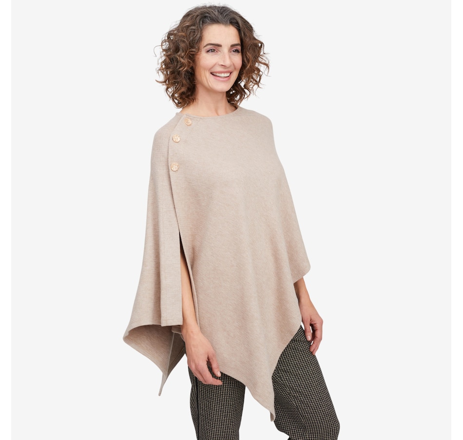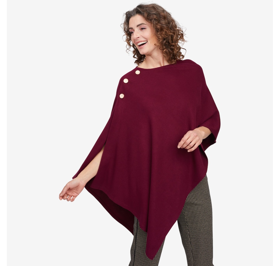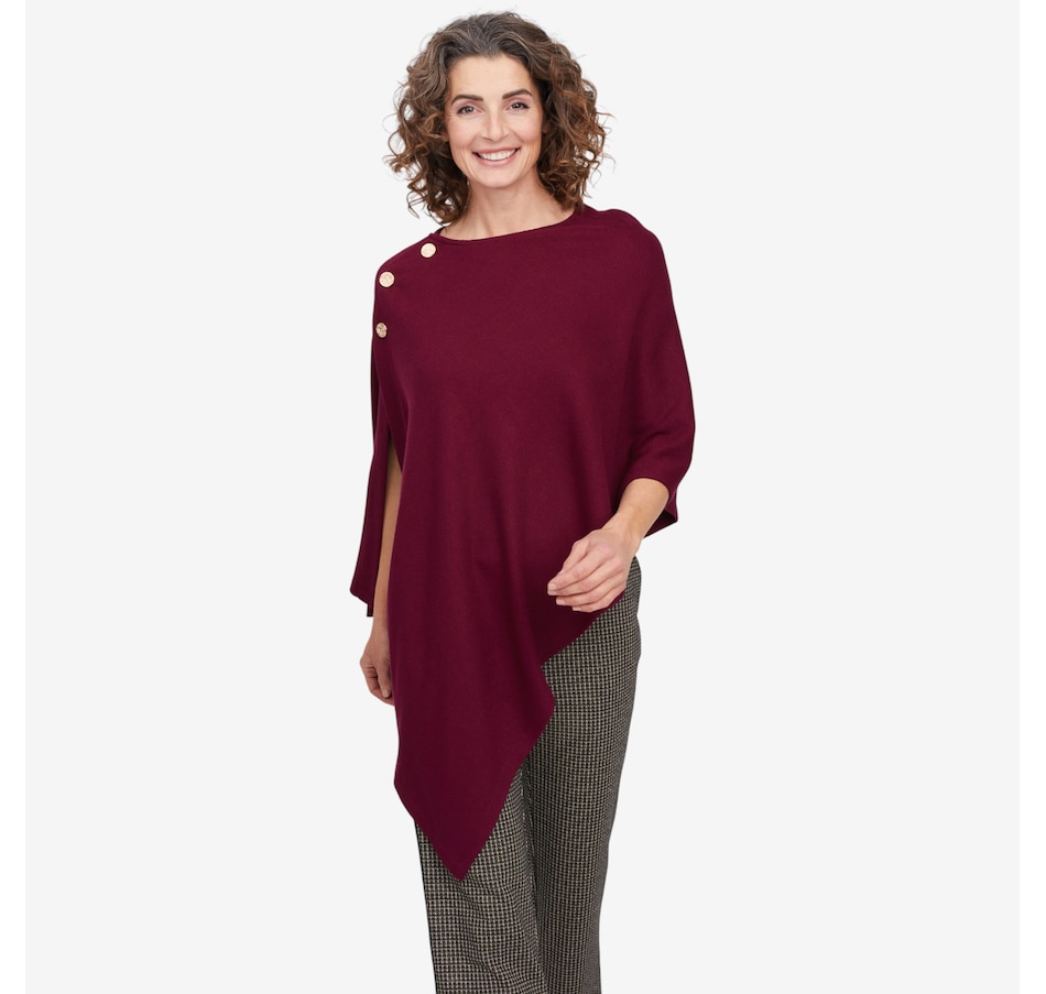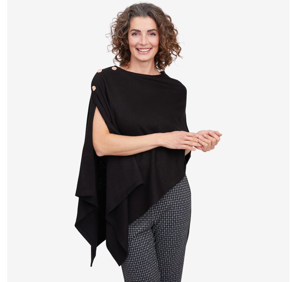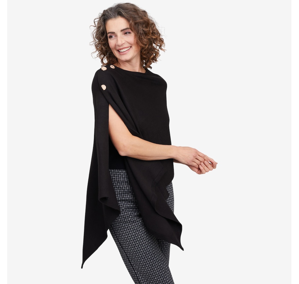 Arriving just in time for the season, you'll finish your cooler weather look in cozy, elevated style with this wave knit shawl from Mr. Max. It is available in a great selection of different colours to suit every taste and ensemble, and comes in one universal relaxed fit size. This great layering piece finishes with some eye-catching decorative button detail, and is also made in Canada!