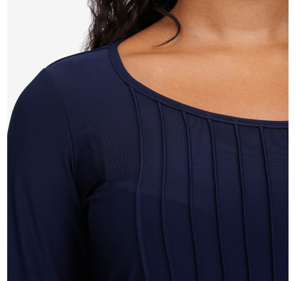 Effortless elegance meets everyday ease with this Nina Leonard 3/4 length sleeve scoop neck top. Designed with easy pull‑on styling, this versatile top features a beautifully flowy front that drapes softly for a polished, feminine look. The fitted silhouette through the body creates a sleek, flattering shape, while the 3/4 sleeves offer just the right amount of coverage for year‑round wear. Available in a condensed selection of stylish colours, this top pairs beautifully with trousers, skirts, or denim, making it a go‑to essential for workdays, weekends, and everything in between.
