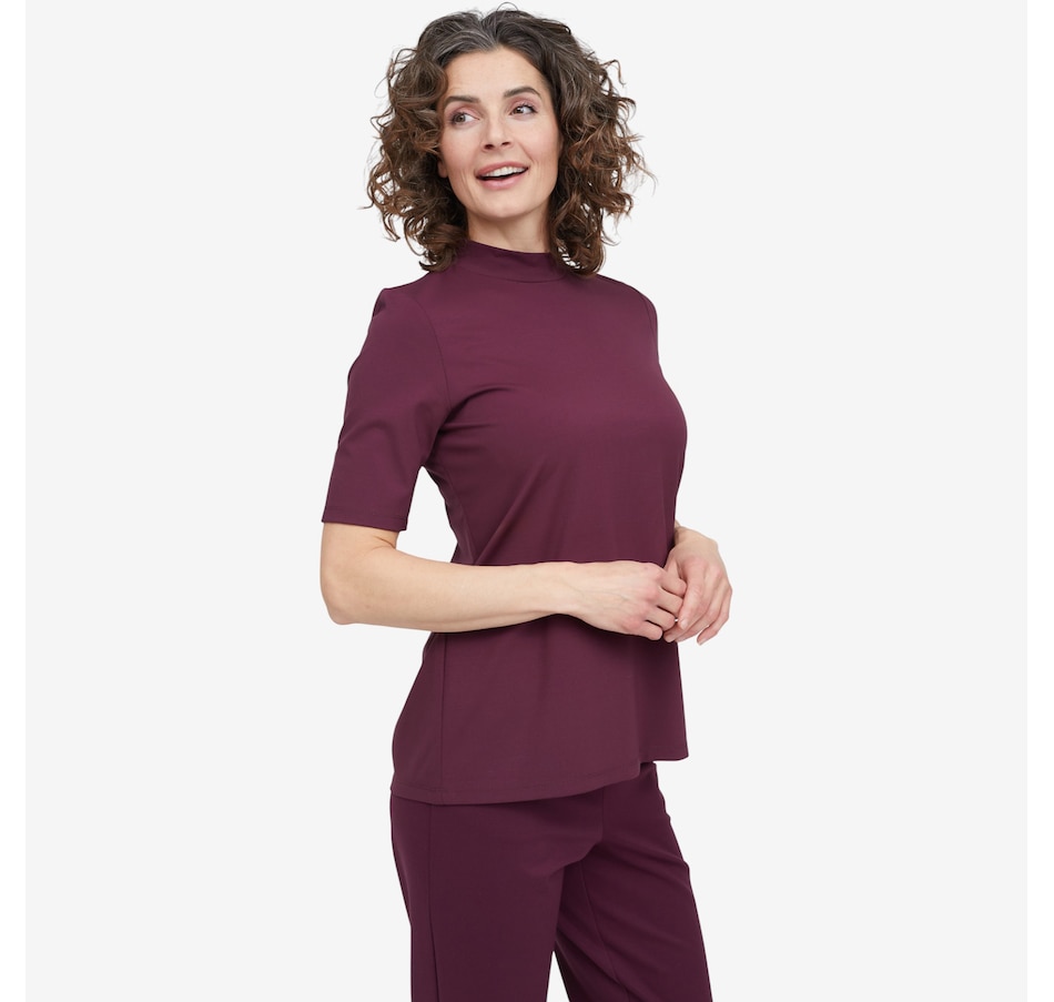Elevate your basics with this Dream Knit Mock Neck Top from Mr. Max. Its smooth, stretchy fabric feels amazing and resists wrinkles, making it ideal for travel or everyday wear. With elbow sleeves and a flattering mock neck, this Canadian-made essential pairs effortlessly with pants or skirts for timeless style.
