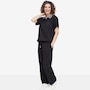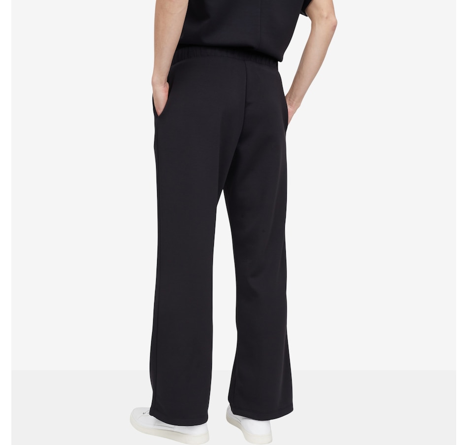 • Relaxed fit; comfortable no-twist elastic waistband; drawstring; mid-rise; pull-on; wide leg silhouette, pockets; finished hem
