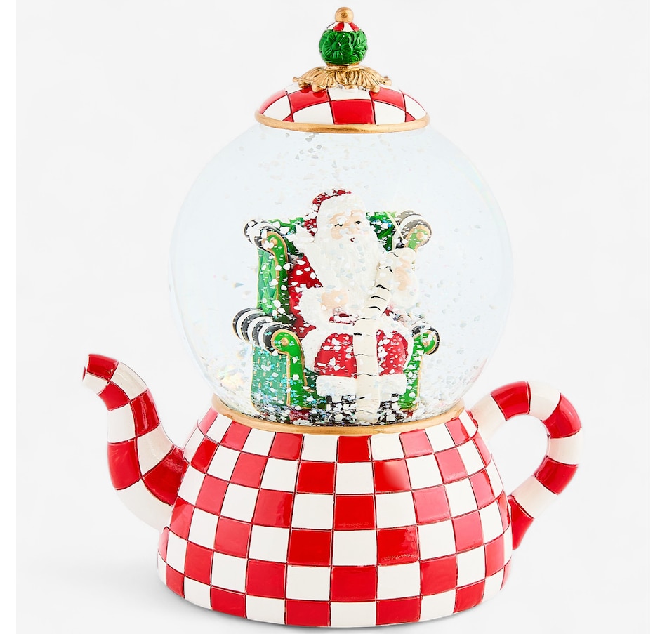 • MacKenzie-Childs Check It Out Teapot Snow Globe
