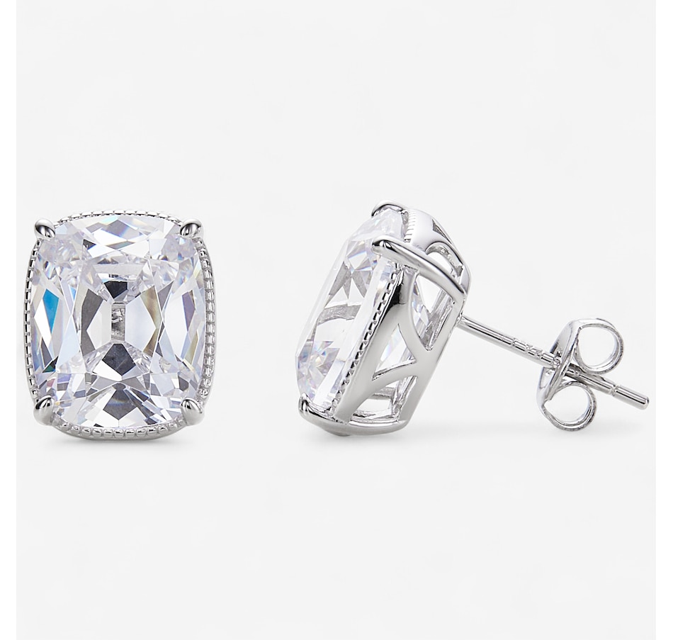 Sterling Silver Elongated Cushion Diamonelle Stud Earrings