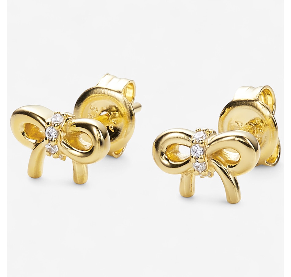 Sterling Silver Yellow Gold Plate Diamonelle Bow Stud Earrings