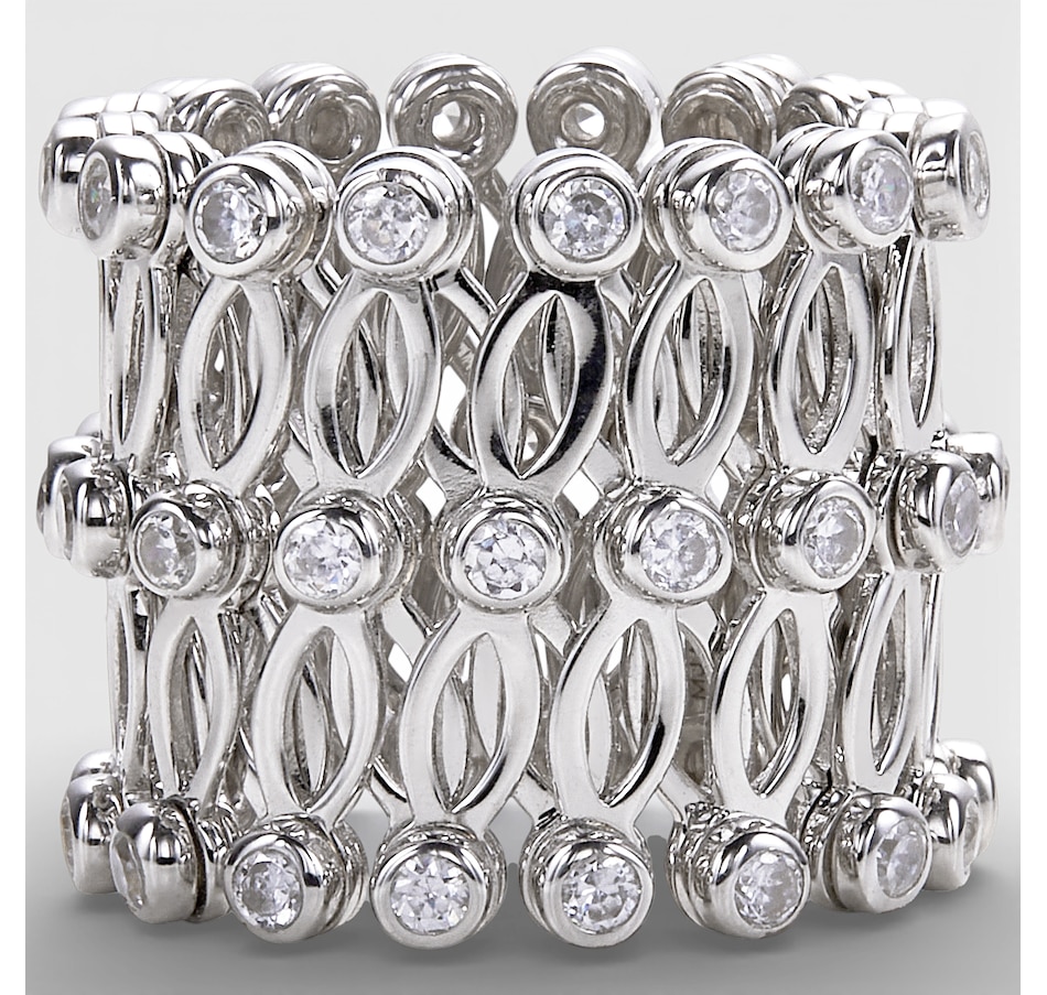 Add a touch of refined sophistication to your jewellery collection with the Silver Gallery sterling silver bracelet and ring set, a beautifully coordinated duo crafted for effortless elegance. The telescopic joint bracelet offers a graceful drape at just over 7.5" in length, making it a versatile, comfortable fit. The matching ring, measuring approximately 0.75" from knuckle to knuckle, delivers a bold-yet-polished statement without sacrificing comfort. Both pieces are expertly crafted in rhodium‑plated sterling silver, making for a lasting shine, enhanced durability, and a luxurious finish that resists tarnish.