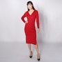 Long Sleeve V-Neck Twist Front Knit Sweater Dress with Side Slits